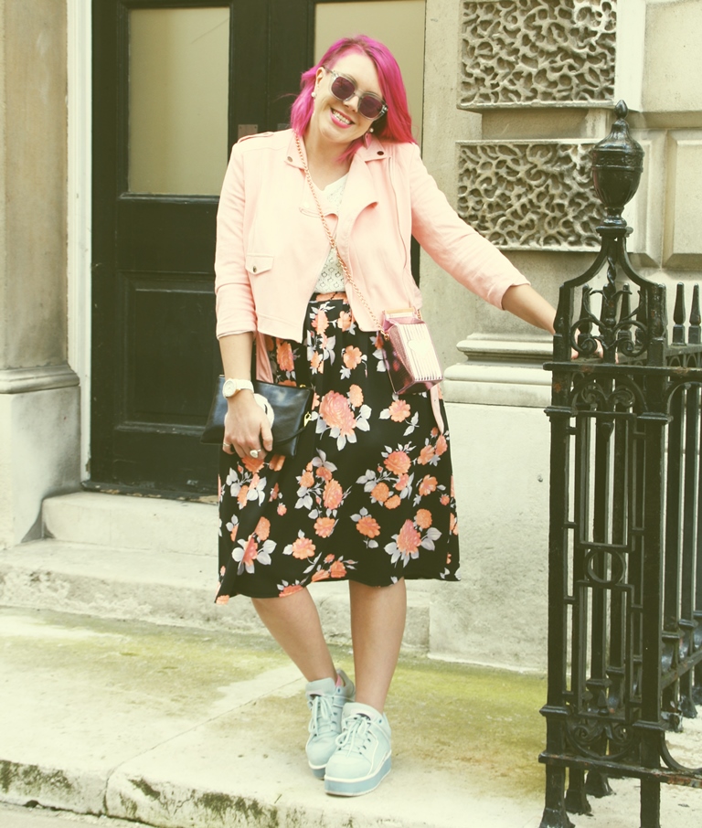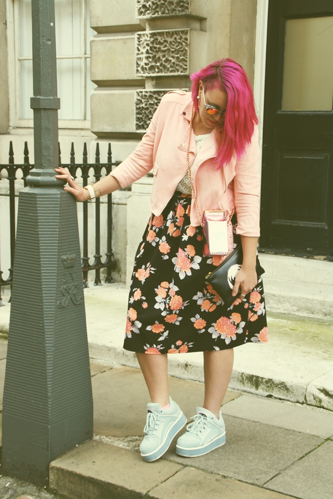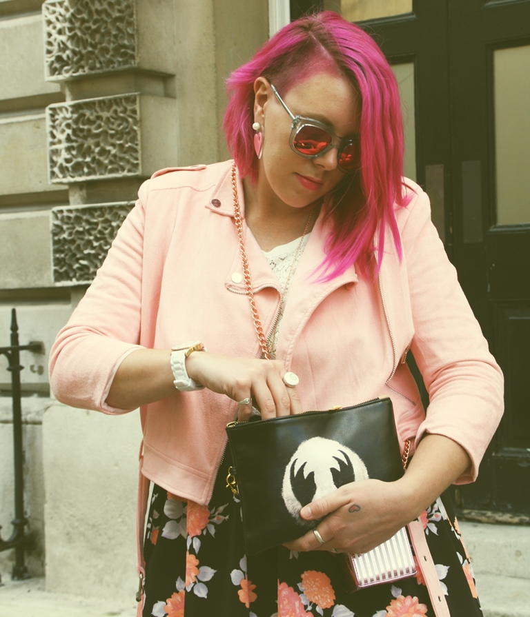 As my hair is freshly dyed pink, I thought I would play around with different shades of pink at Somerset house and everyone loved this look including this amazing and soft, cropped jacket from Miss Guided. It has a sort of suede feel to the material and a fair few people did stroke me today as it was so soft. This jacket is a complete bargain at £39 and is great for our weather at the mo and for generally looking awesome!