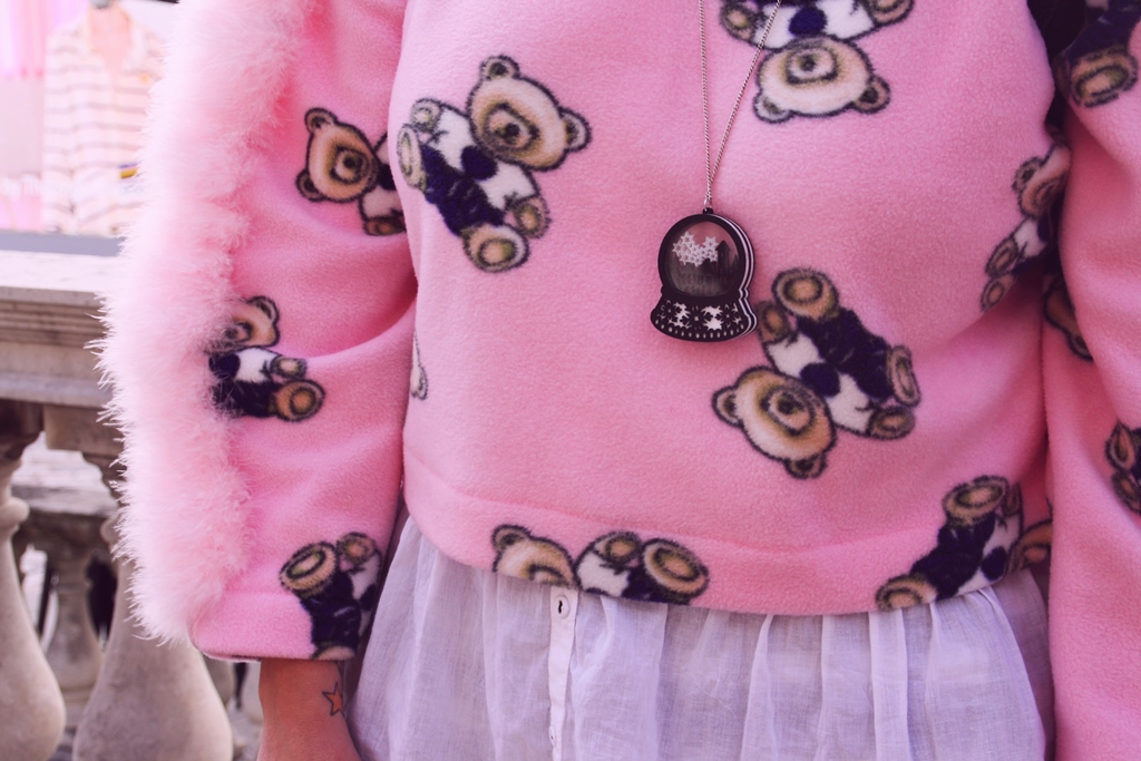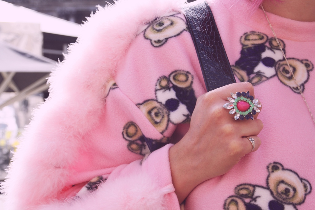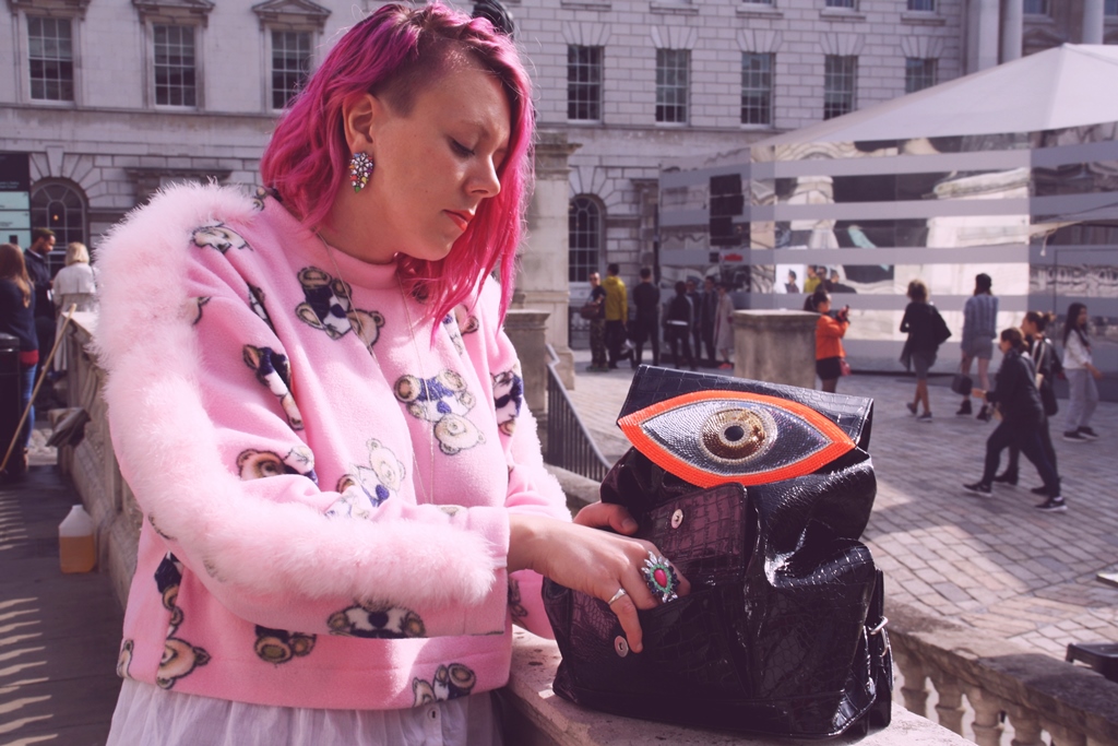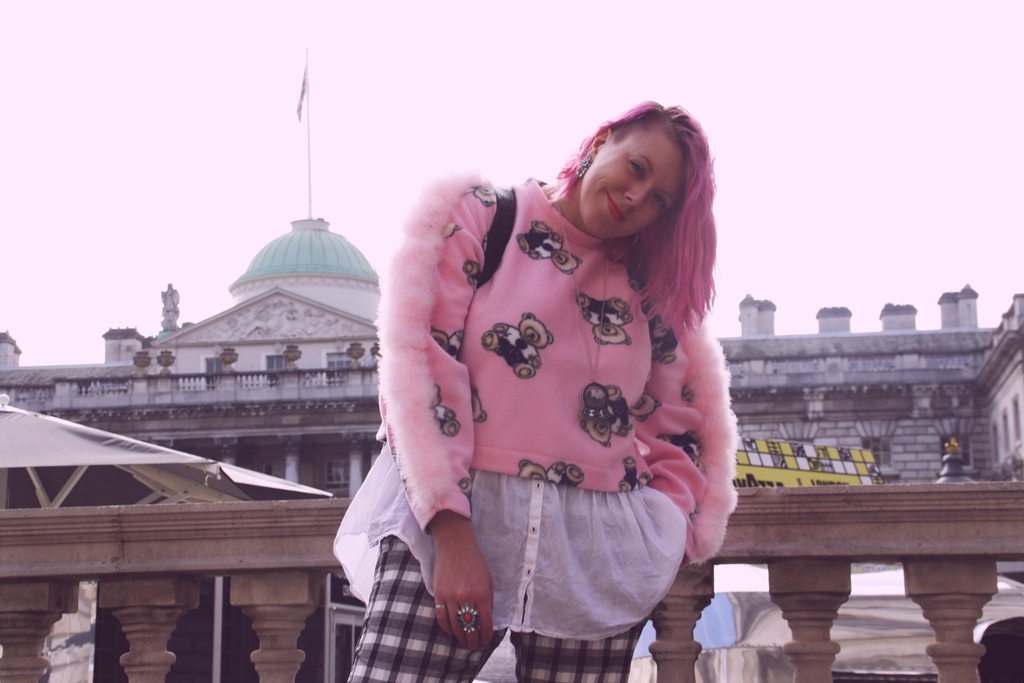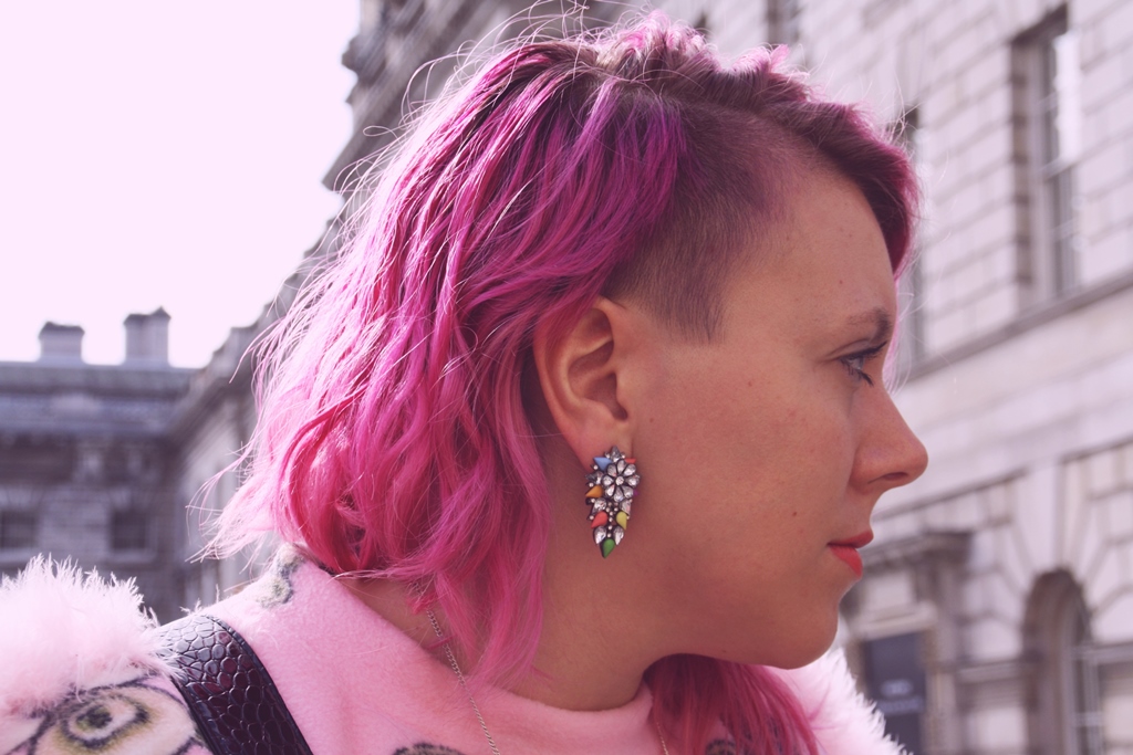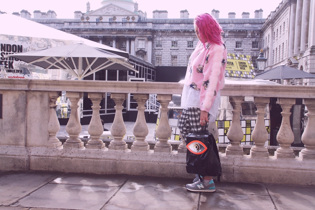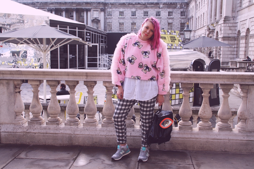 Day 4 of LFW and my outfit has got a little more wacky! As Fashion Week is all about having fun, I thought it was a great opportunity to get this cute, pink jumper out from Somewhere Nowhere. Available in one size, it has a oversized look to it and I love just how cosy and warm it is. The feathers on the sleeves are also amazing and I think it attracted a lot of attention at LFW.
