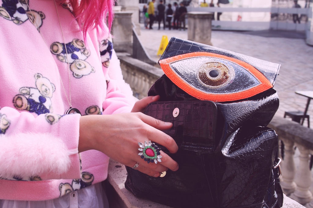 I love a good rucksack and sometimes, with loads of things to carry at LFW, it was nice to try out this EYE bag from Sunita Mukhi. With a black patent style and embellished Orange eye, this bag really offers something unique and with an affordable price point, it really is a no brainer and looks amazing with anything!