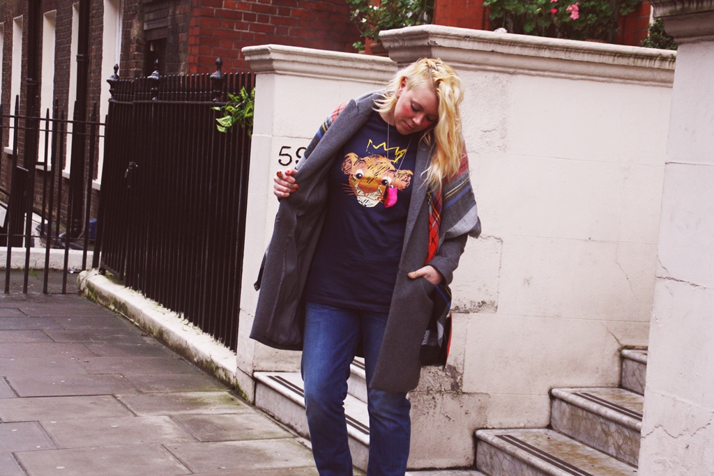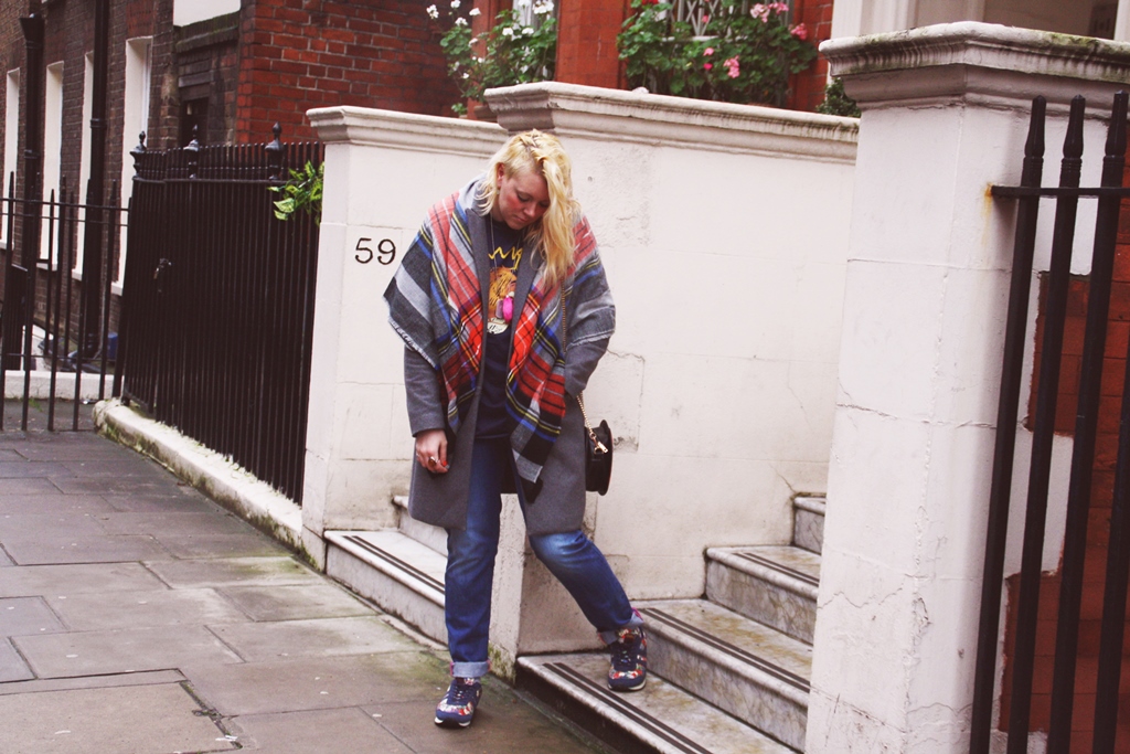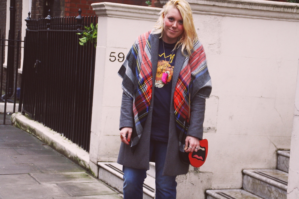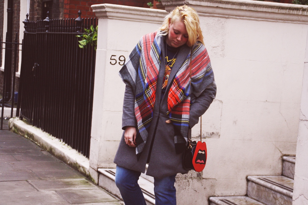 It’s always nice to see what surprises you get in a goodie bag and I love this scarf/shawl from Mango that I received recently. With a bang-on-trend tartan and red for AW14, it’s a great accessory to throw on over an outfit and I think it looks amazing with this coat and casual boy look. It’s uber warm too and it really gave this look some more interest and dimension.