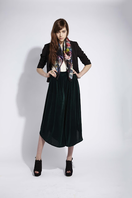 Mina have some lusty new pieces touching down for A/W 2012. With velvet skirts, contrasting sleeves and a mannish look, things are looking tailored and smart for Mina this season.
