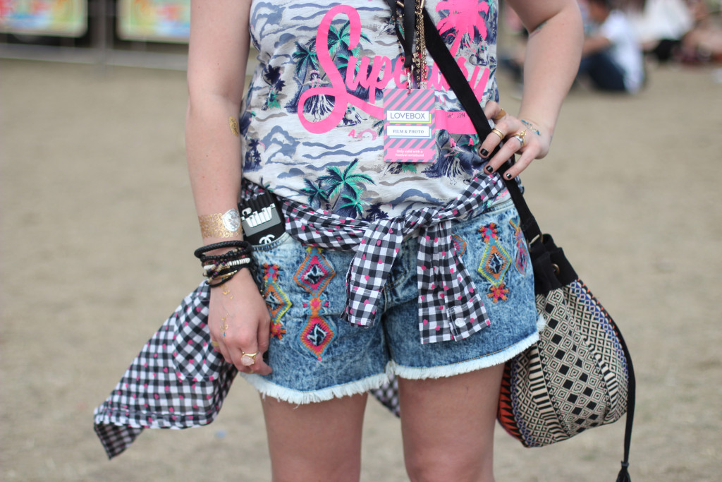 I was born in a leather jacket so wearing one of Superdry’s black, Italian styles was great for Lovebox. The material is uber soft and I love the red contrast of the lining against the black, luxury leather. I teamed this jacket with Simply be’s heart shirt that I wore tied round my waist at the festival. The mix of checks and hearts makes this shirt very cool for SS15 and it looks great oversized with these cute shorts.