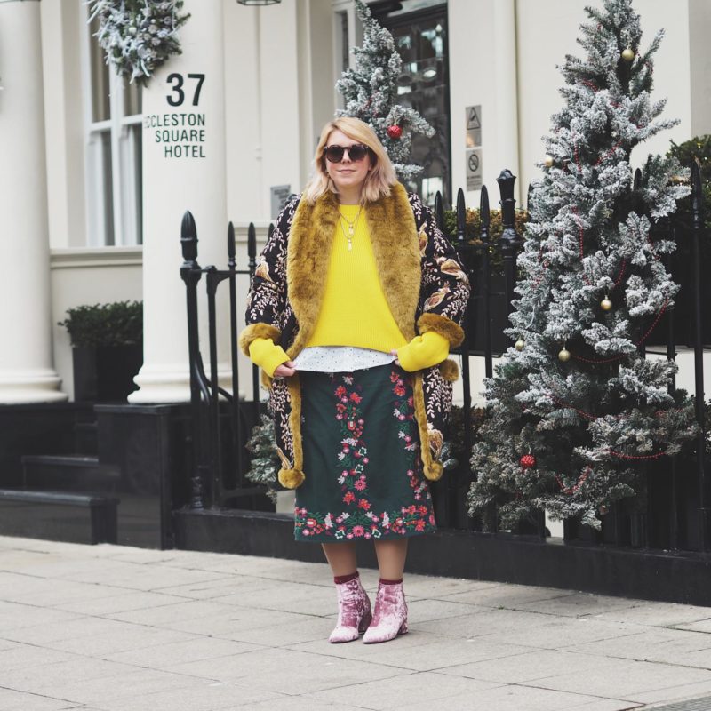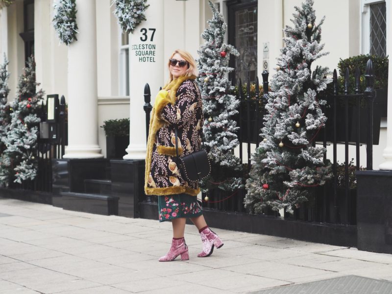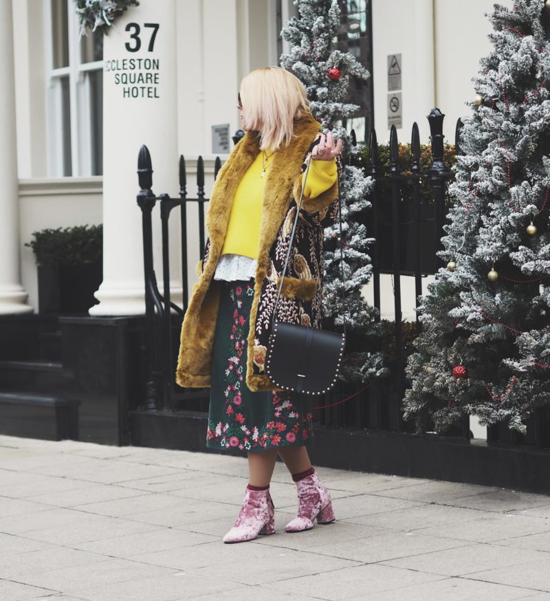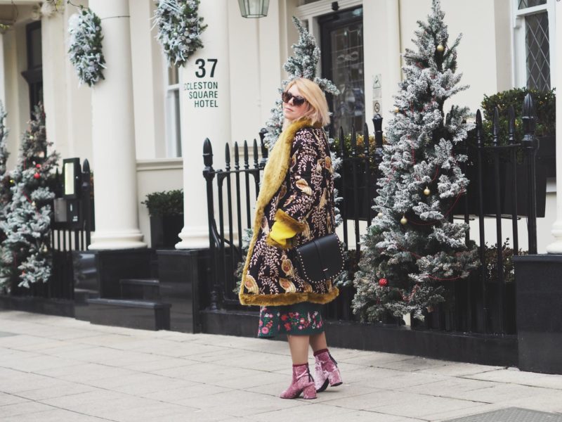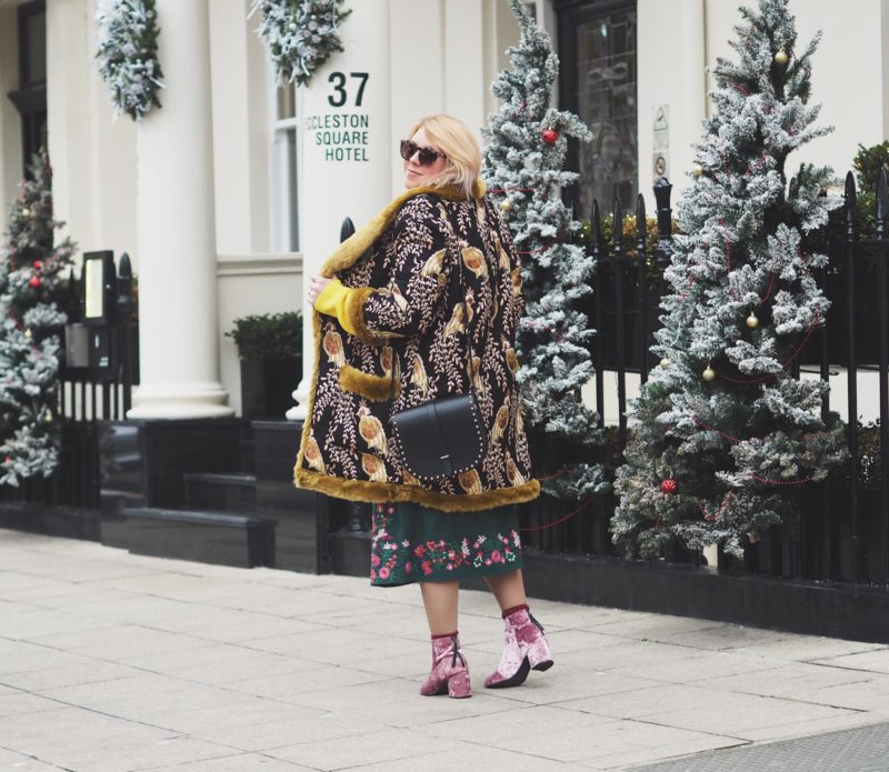 Last year I wore a nice velvet number with a coat that everyone seemed to like(see it here) but I felt like this year I wanted to upgrade my style stakes and wear something that made me feel extra special.