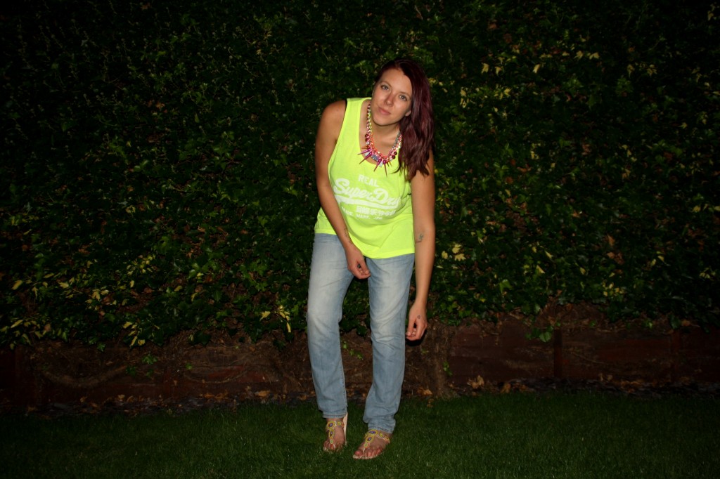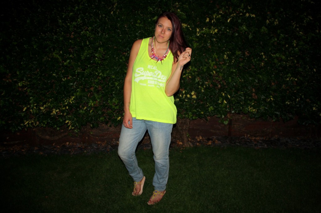 As well as great denim, Superdry has some great tops and I thought this Neon oversized vest top was fab with these jeans. I love the large open arms and this top would look even better with a neon coloured bra underneath for an extra colour injection.