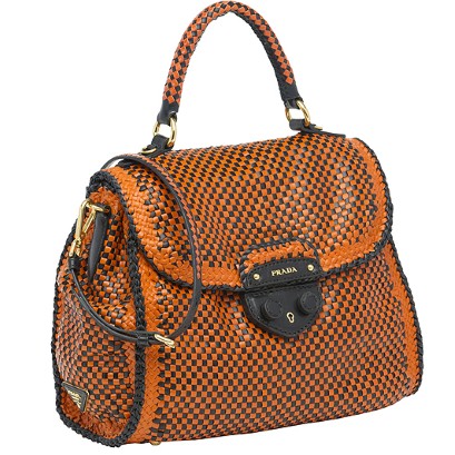 In a bright, attractive Orange that is inter-weaved with black, the Prada Madras is the bag to be seen in and drool over…..Papa needs to buy me a new bag!