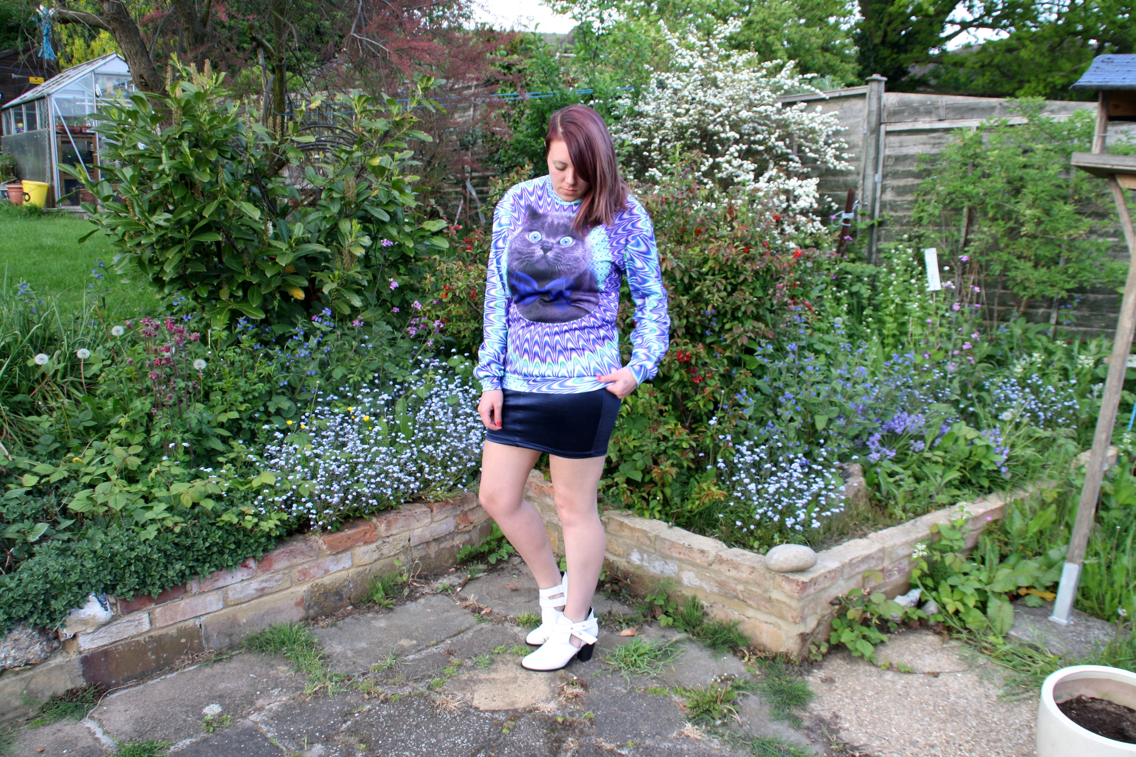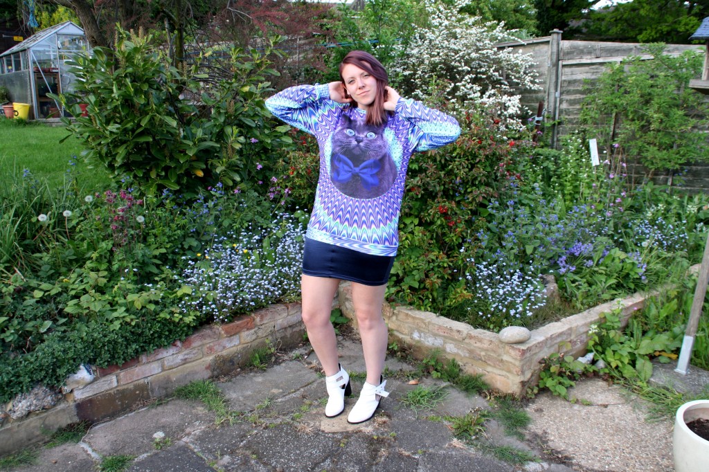 So to kick-start us off, I thought I would go for something a little wacky that could be a day or night look. The skirt itself is very flexible and isn’t too short either so you will be safe with all the tube jumping or generally working around you may have to do. With a shiny surface and button and zip fly, it’s very comfortable and is great teamed with a groovy jumper.