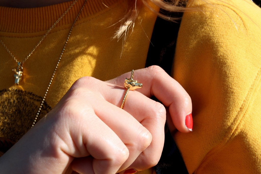 Me and Zena have some lovely gems for jewellery lovers and this Unicorn ring and necklace are perfect for something different! In a bright gold that shines and mixes so well with my outfit pallet here, this matching set would look great on a night out or with a slightly wackier outfit.
