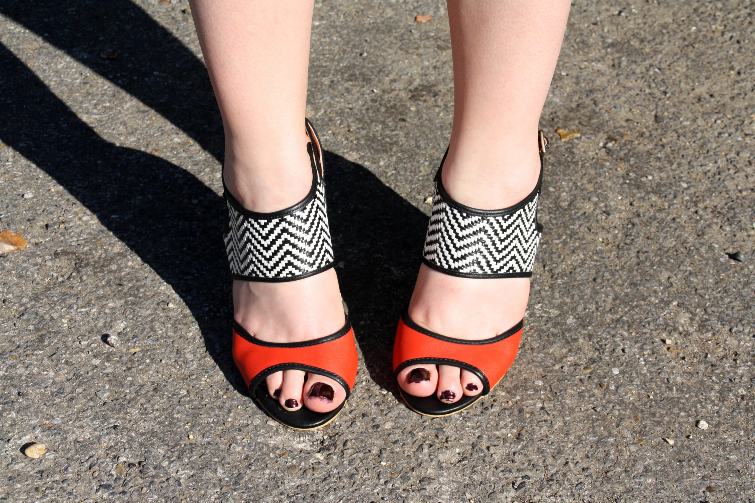 Some statement heels always pick up an outfit and these Raffia heels from Ravel are perfect to wear with something casual or of course smart. I love the orange injection against the black and they are majorly high, giving my legs a nice shape.