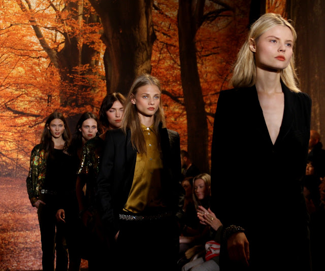 The new A/W collection from Paul and Joe is very much the same mould as the label’s previous season but with some nice new details. With their signature winter florals and dresses, Paul and Joe have inserted a dose of Masculine attire with tailoring jackets, trousers and rich and male friendly colours. With fabrics such as heavy velvet, padded hunting-bomber jackets and pea coats, there is a clear inspiration of heritage from military to the old gun club and their favourite hunting gear. As Paul and Joe are usually over girlie, these new pieces are a nice change from the norm and gives us something consider when we rock one of these styles for A/W 2012.