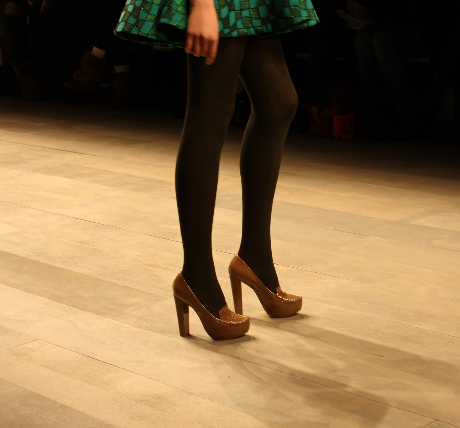 The Models, with their triangle cut hair, graced the catwalk in an array of pieces. From twinsets to flippy dresses, the mood that was being set was one of fun and texture for the new winter collection for 2011.