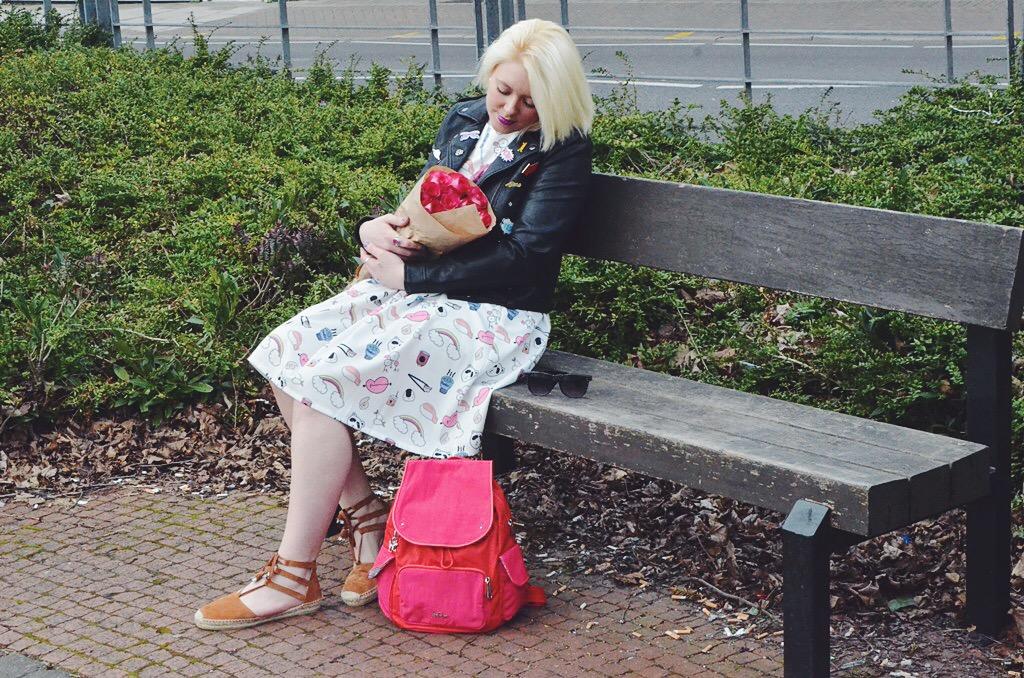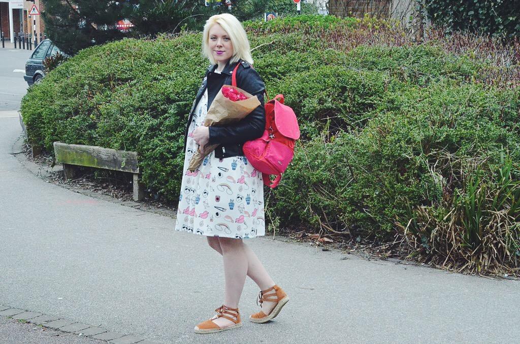 To match such a busy and cute dress, I thought that this badge faux leather jacket from Zara was perfect! It’s more than I like to pay for something that isn’t leather(it’s £59!) but I just totally adore the embellishment that are all over the front and it just fits me so well too! It’s a great seller for Zara but there are just a few left so if you want one, be quick and get yours now!