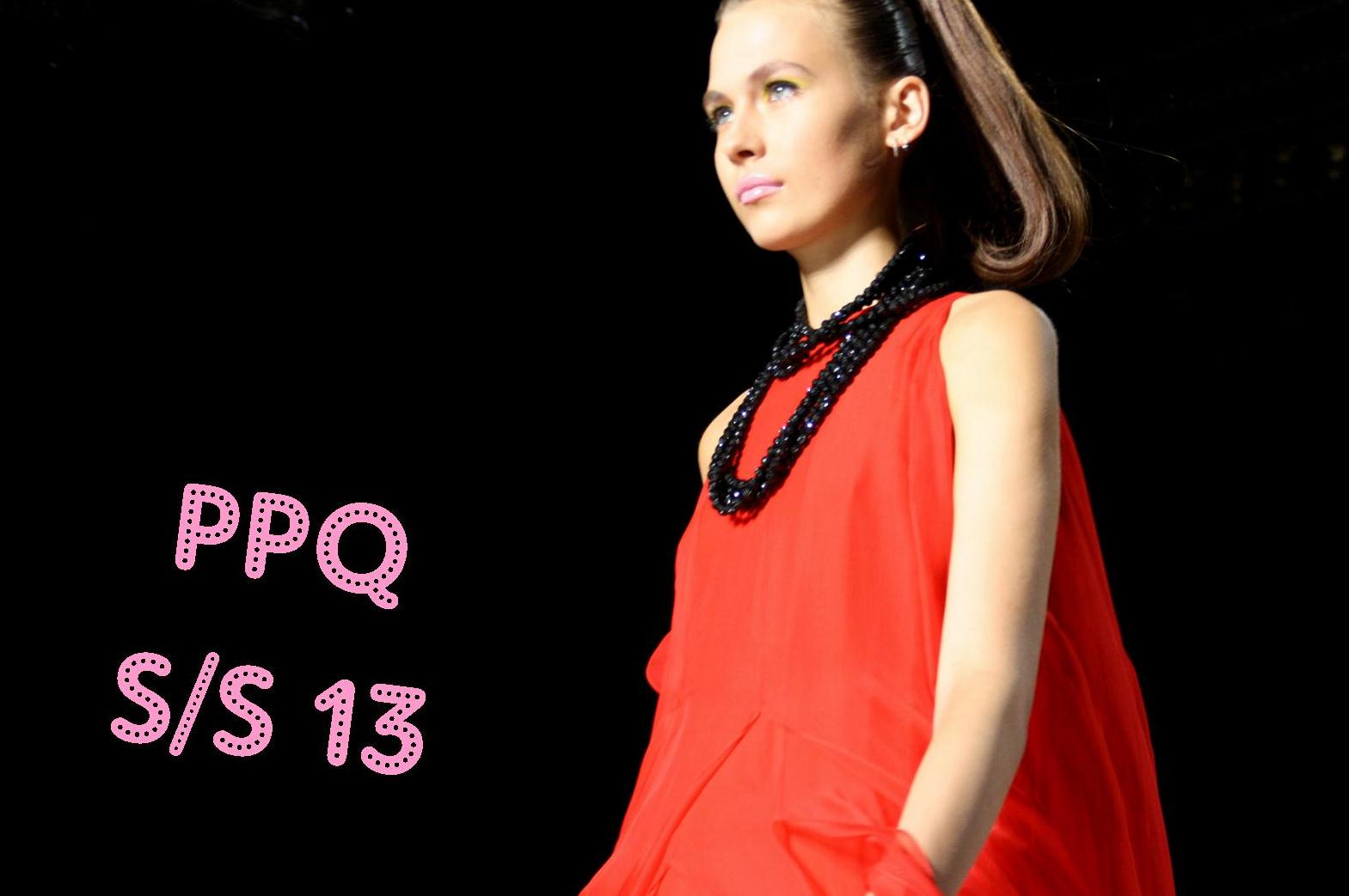 The French Riviera was rife with 50’s and 60’s influences from PPQ. With splashes of pink paisey ‘PPQ’ prints, Jackie O style coloured sunglasses and large headgear, it’s fun at the sea and on a yacht for the duo’s new SS13 collection. Playsuits, dresses and soft blouses made up the collection with an edge of glamour and evening wear that will certainly brighten up those summer evenings.
