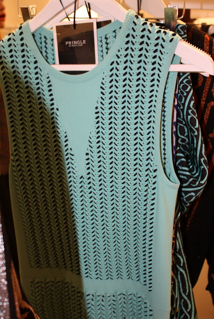 It was a real treat to see Pringle’s S/S 2012 collection up close. With great details such as coloured shape sweaters, cut out dresses and metallic jewellery, the traditional heritage brand are taking a slightly different route but you know what, I love it!