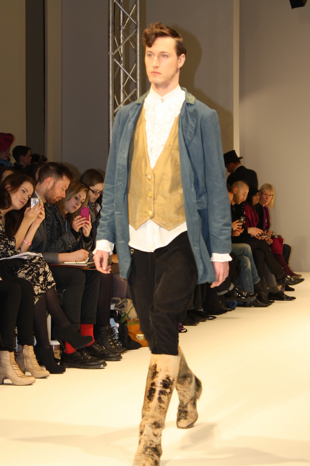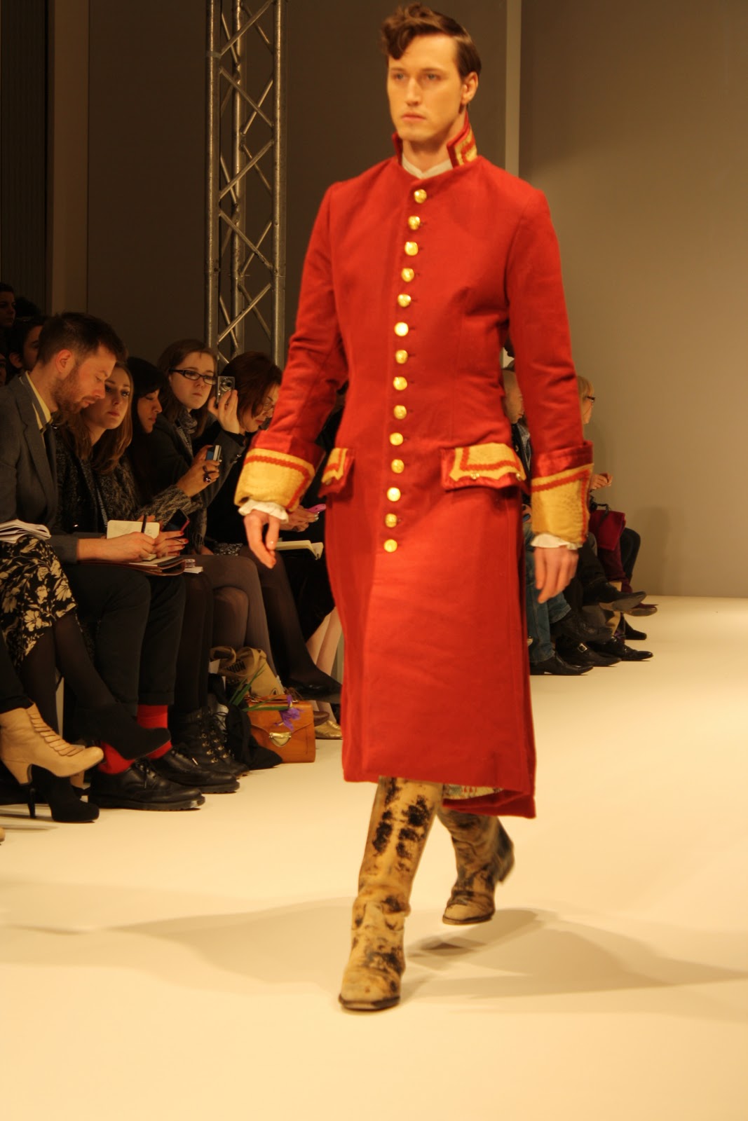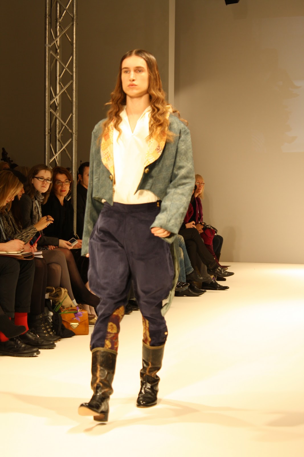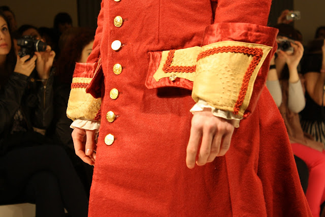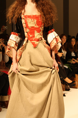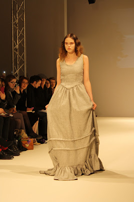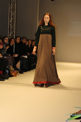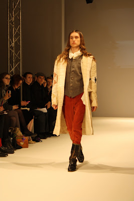 Taking inspiration for the era of Louis XV, Costume like clothing inspired from the rich and poor people of the past have been infused and clashed to create a historic collection of pieces for the modern day. With Men’s and women’s fashion, an era that has long since past has been brought to life, in the form of velvet tail coats, Peasant dresses, patchwork jackets and bodices and all these styles created a fantastic look and feel to the whole show. The Jackets and tailoring would easily be paired with skinny jeans and converses while the dresses and lose womenswear could suit any style.