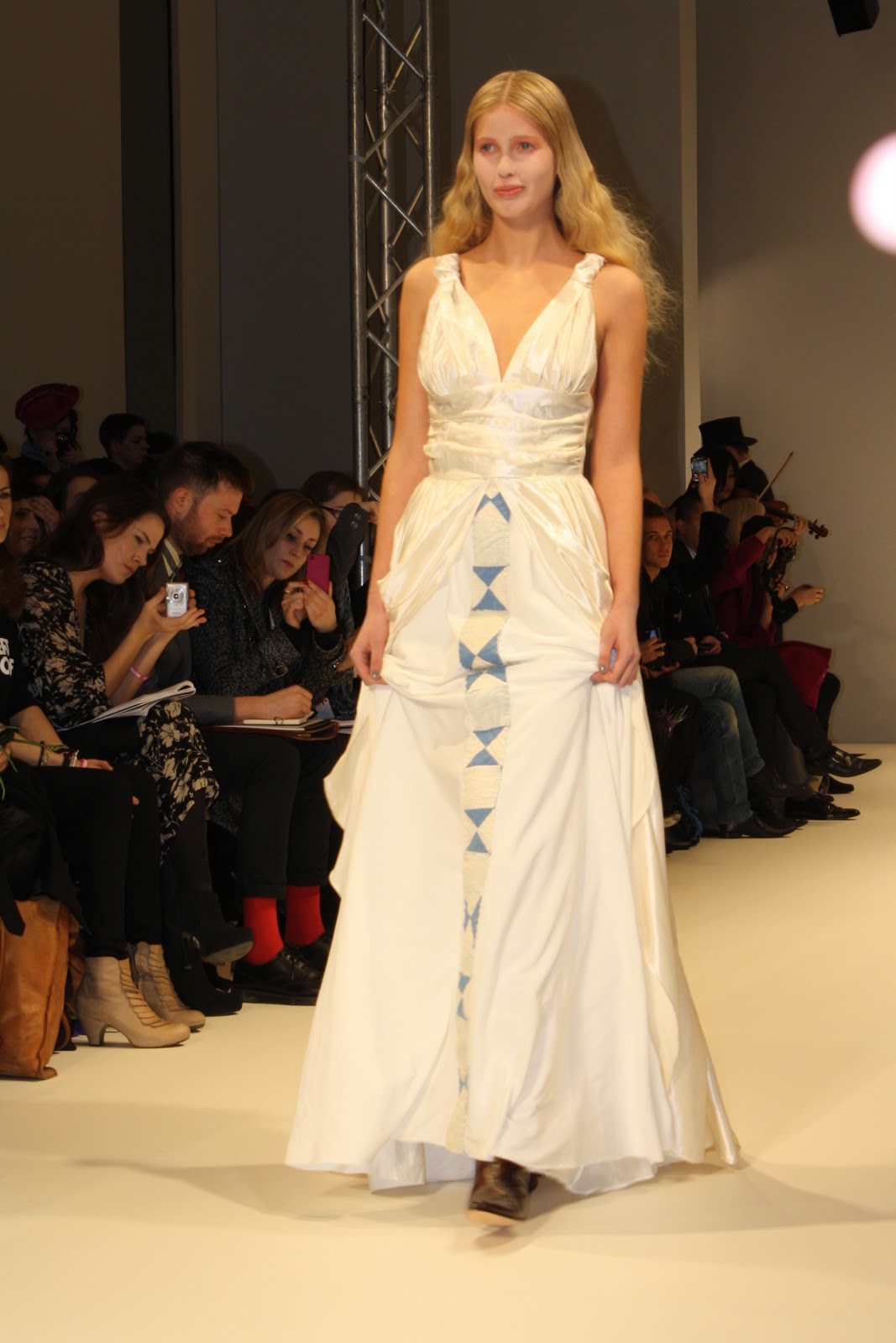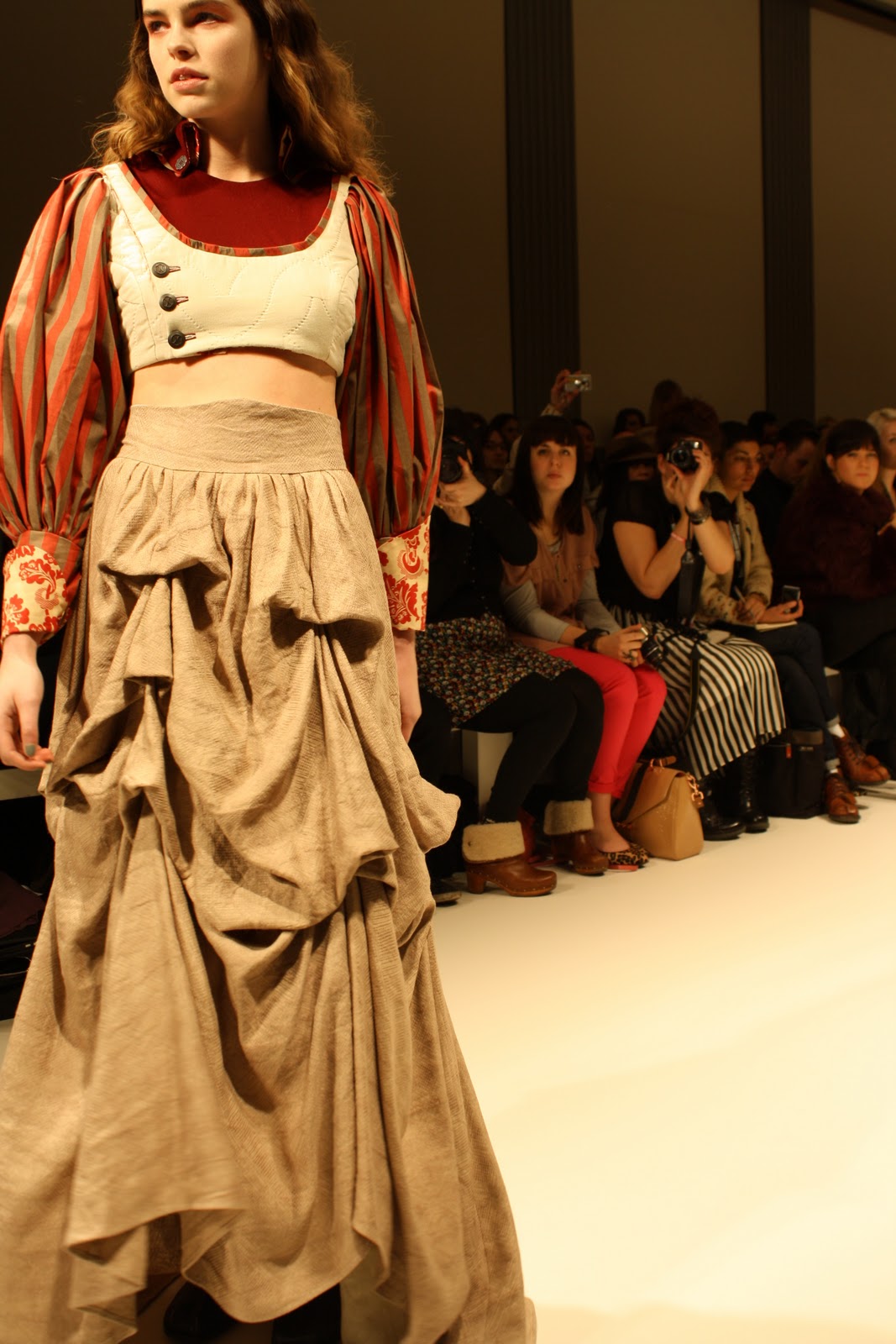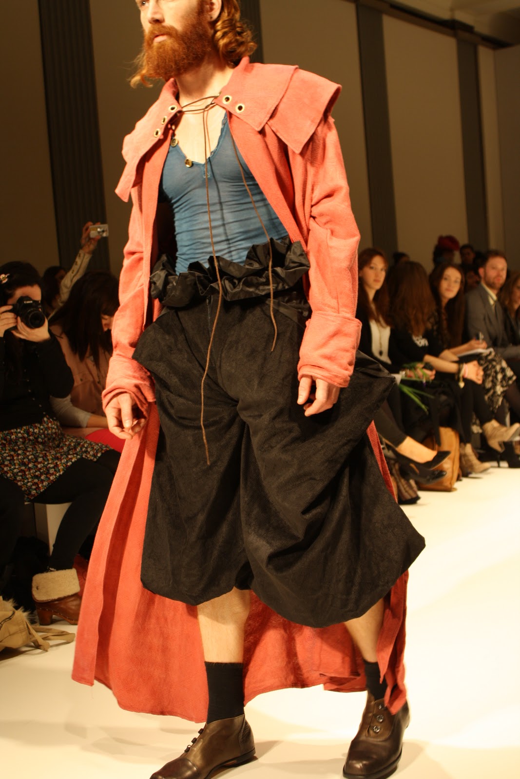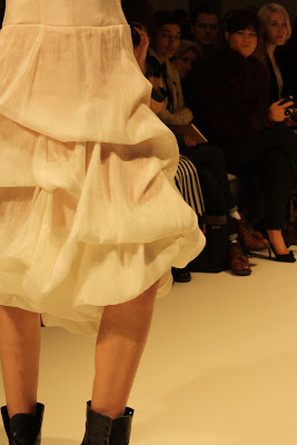 Taking inspiration for the era of Louis XV, Costume like clothing inspired from the rich and poor people of the past have been infused and clashed to create a historic collection of pieces for the modern day. With Men’s and women’s fashion, an era that has long since past has been brought to life, in the form of velvet tail coats, Peasant dresses, patchwork jackets and bodices and all these styles created a fantastic look and feel to the whole show. The Jackets and tailoring would easily be paired with skinny jeans and converses while the dresses and lose womenswear could suit any style.