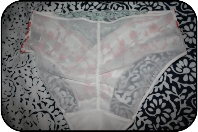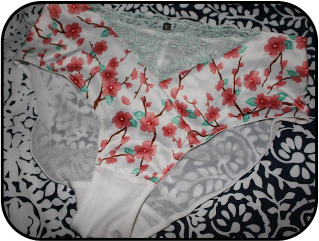 The netting material is very soft and the light green lace, really compliments the Cherry Blossom print. With the whole set costing £49, it is very reasonable as you are buying some high quality underwear that is cute, very girlie and Sexy too. Even though the knickers were a little too big, they were very comfortable and would be ideal to wear in bed or with a gorgeous, slimming skirt.