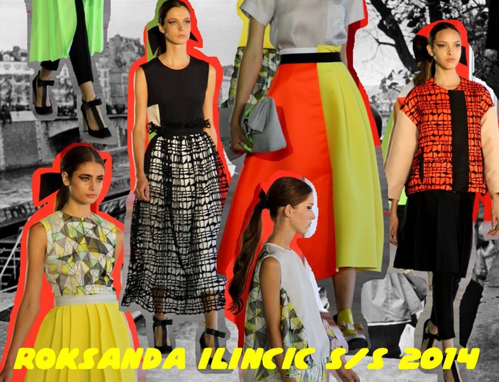 Spring/Summer has always been a time for celebrating the warmer climate and experimenting with old trends past and abusing bright colours that just won’t cut it in Winter. Roksanda Ilincic is the perfect designer to show us how to have fun with summer and our wardrobe and their latest collection is just as fun and feminine. With a slight french chic inspiration of big black bows and flicked eye makeup, the new collection embraces a more elegant time when ladies lunched, lace was essential and all our shoes had bows on them. A print has played a part in the collection, with a historic style of pop art that would have been in very gallery in the 50’s but it’s the colour pops that really speaks volumes to us. Burnt Orange, seductive purple and lemon yellow all make an appearance and give pleated skirts, cropped trousers and floaty blouses so much more depth. A gappy black lace was an injection in many of the tops and dresses but I think the full skirt with the white underlay looked classic and yet modern for the ladies of today.