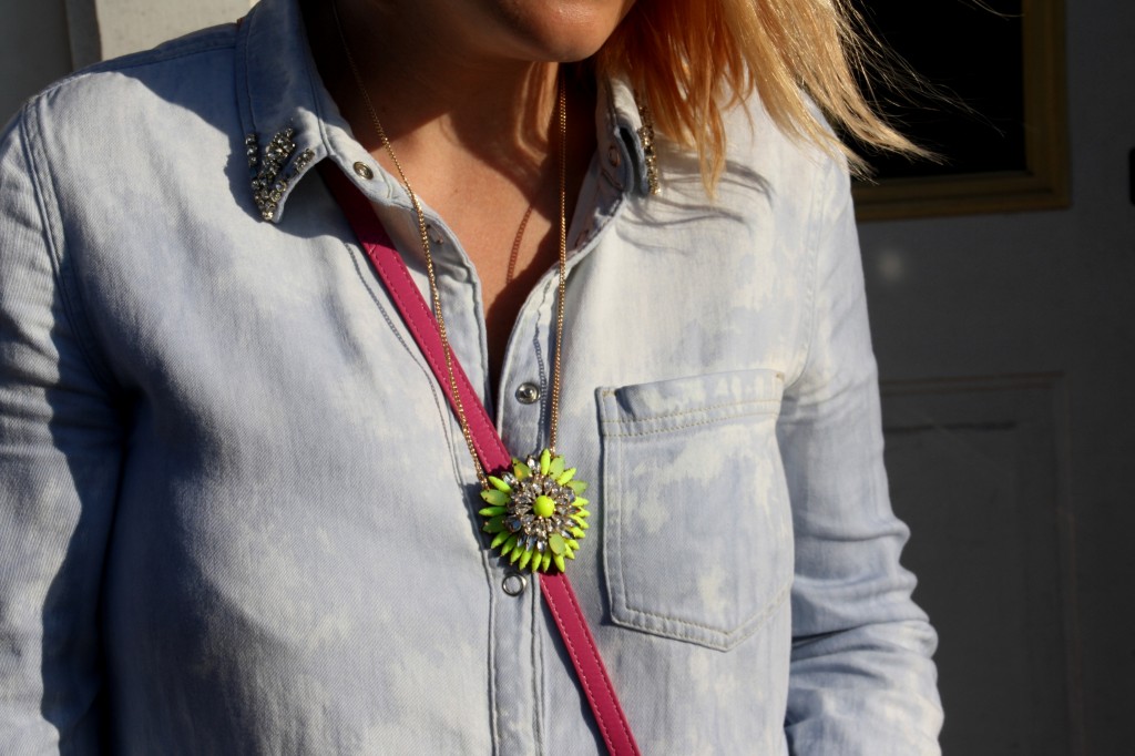 The sun was beaming yesterday so I took full advantage of the lovely weather and got some outfit posts done to show you lovely lot some great new products! As I am one for sunning my legs, shorts are key to my summer wardrobe and I love these printed ones from Whistle and Wolf. With a lovely silky material and bright colours, these shorts are great for an evening out and I love all the clashing pink colours and the hint of Neon.