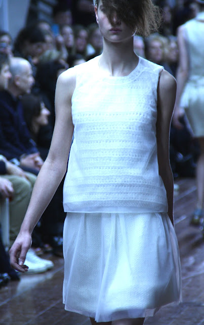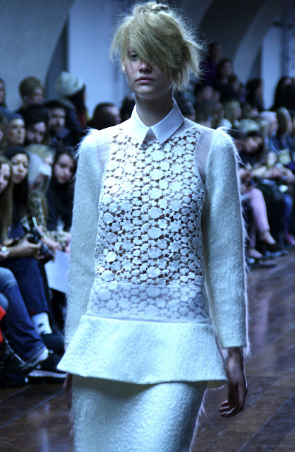 Simone Rocha has followed in the foot steps of her father and created another full and bubbly collection of textures and simple colours. With lace, plastic, wool, organza and leather, all natural and man-made materials have been mixed and jumbled together to create Simone’s new A/W vision. With similar tastes and styles to her Dad, Simone has put her own spin on her collection by giving her pieces more of a commercial and trendy twist rather then following her father’s roots which can be more classic and timeless.