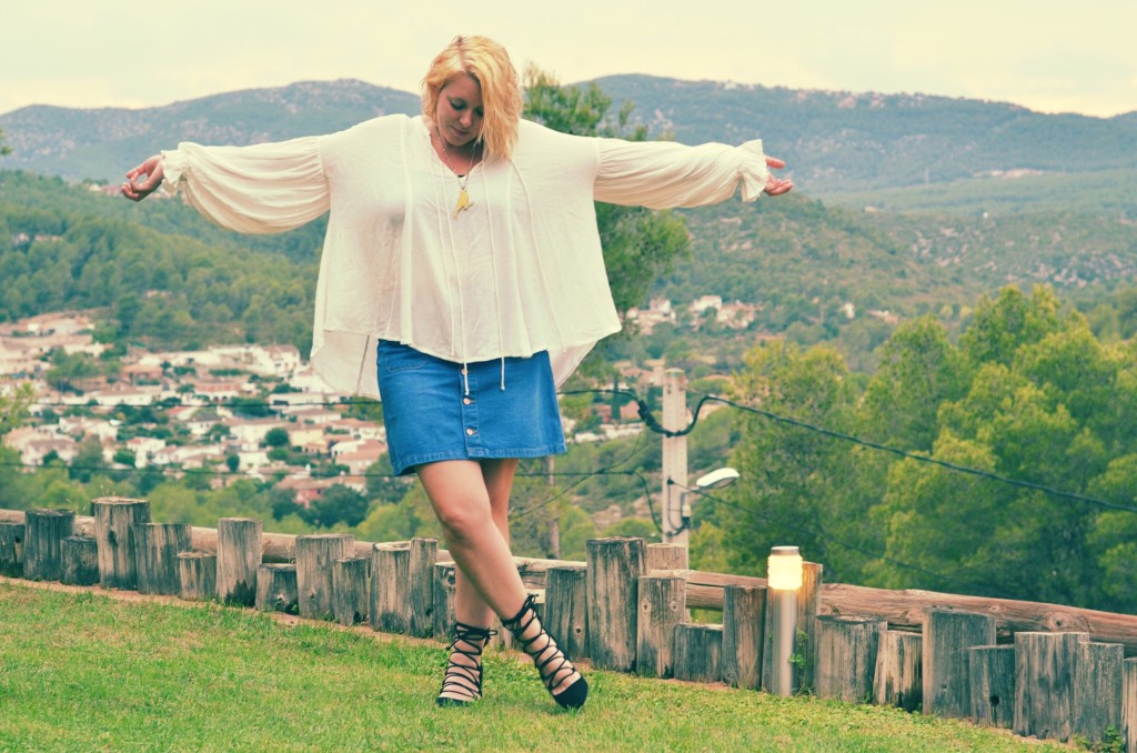 As it’s been a while since I wore Free People so I thought I would show off this boho style drape blouse that I have been dying to show you. I adore it’s pillowy sleeves and the cheese cloth material is heaven to wear in warm temperatures. It looks great tucked into shorts or even over a pair of frayed jeans. I styled it with this gorgeous denim skirt from New Look which I recently got in their sale (by the off chance) and it’s a great combo to wear even now with our Autumn transitional weather.