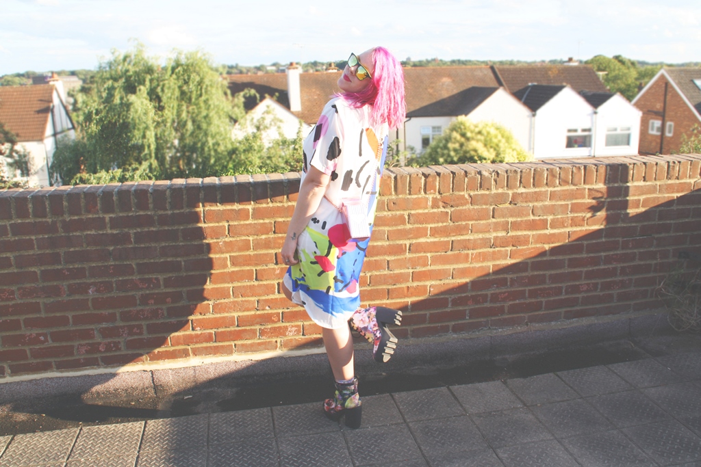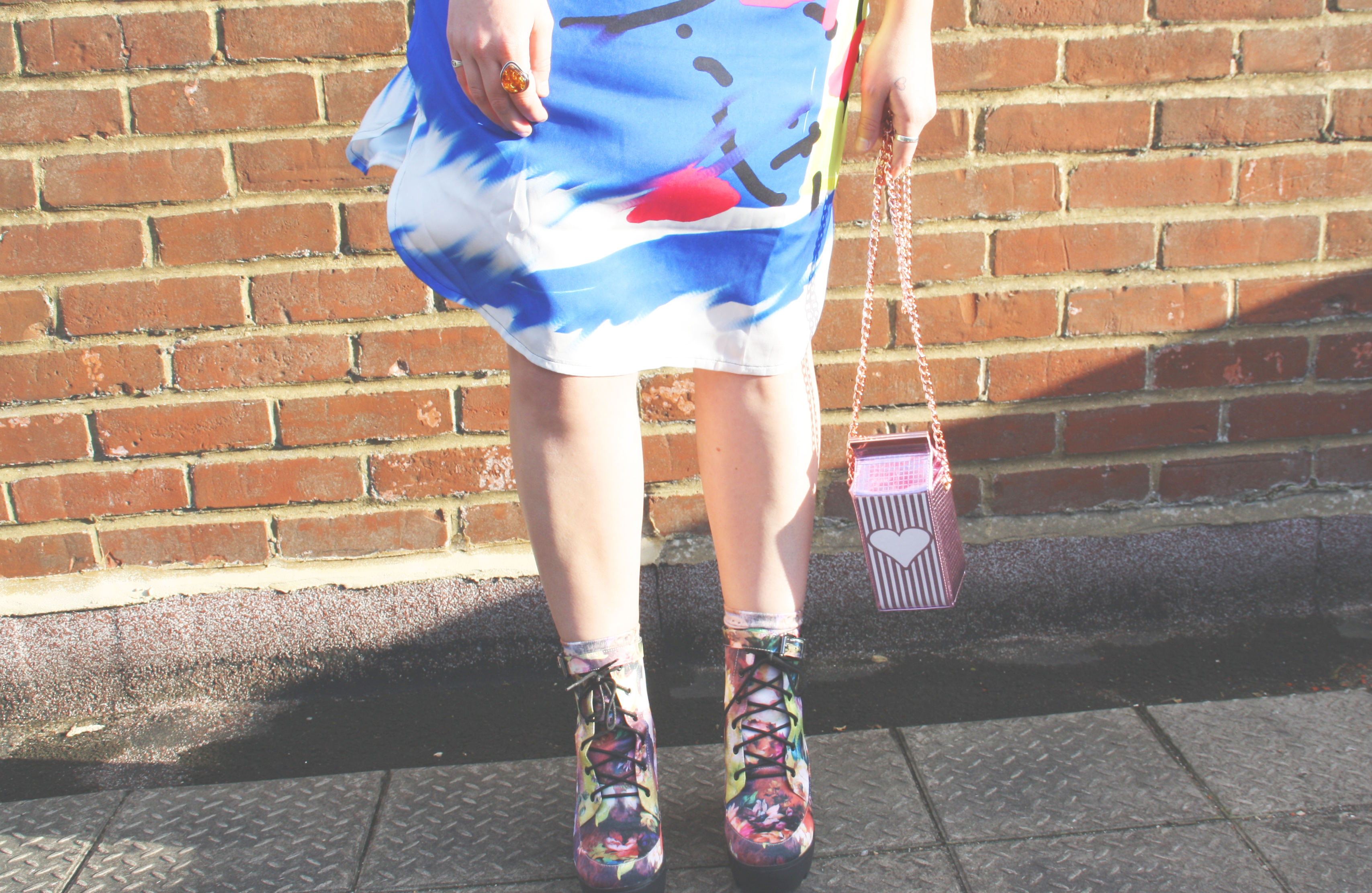 To match such a look, I knew some rather usual accessories were probably best to wear with something so colourful. You may have seen from my instagram this really gorgeous Milk carton bag from Bershka. I Love anything unusual so I know I had to have this bag as soon as I saw it! Sadly I was sold out online but after tweeting Bershka, the brand kindly put one on hold for me and I purchased it a few days later! The purple metallic colour really appeals to me and it is big enough to get all your day to day bits in like your phone, credit cards and some make-up. I defo think I will be wearing this at Fashion Week and I can’t wait to wear it more out and about!