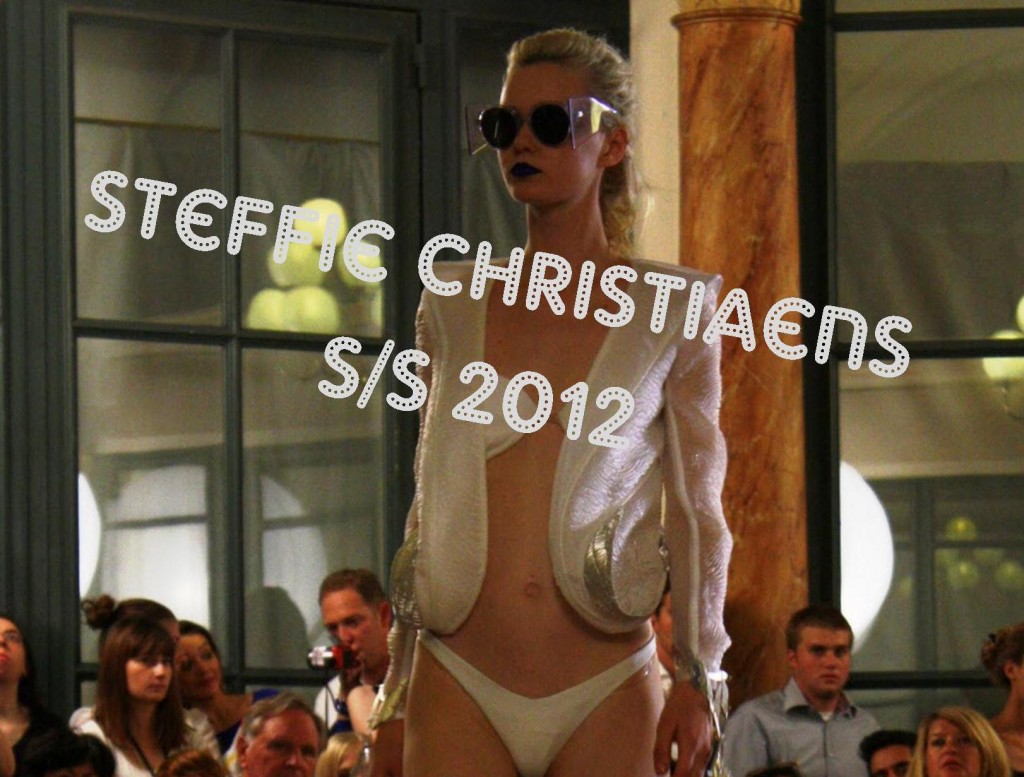 Space Women and Warrior gear was the theme for Steffie Christiaens’ Show for S/S 2012. With a heavy influence in strong Femininity and Sexed up dresses, it was more a celebration of the female form and the power they sometimes enjoy showing. Gorgeous Shoes, in sculptured forms and heavy accessories decorated the Catwalk while the clothing ranged from feather skirts to Bikini’s proving there is nothing like a bit of Girl-Power on your first day of Paris Fashion Week.