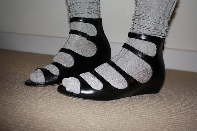 For a more fun look, patterned socks and legwarmers really give these sandals a fun-ner side