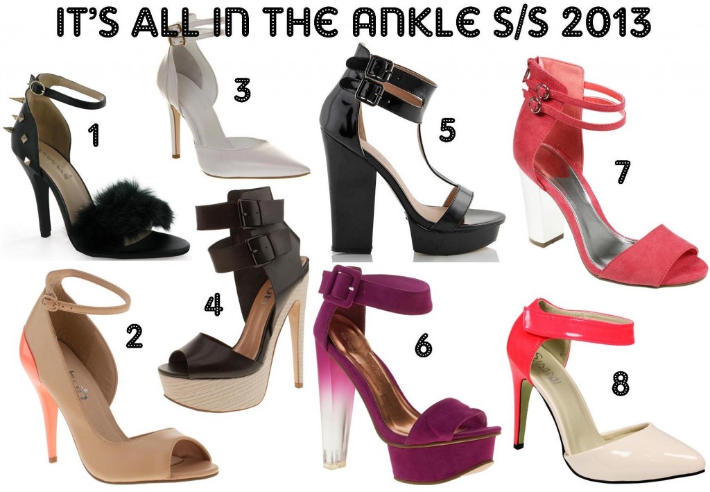 The time for the ankle strap is back! Whether you wear them in a duo, thick and chunky, with flats or platforms, this sexy style is here to stay for 2013. You will see a few styles making their way to the highstreet, designer stores and online to remind us that Summer is coming, it’s just a little delayed….
