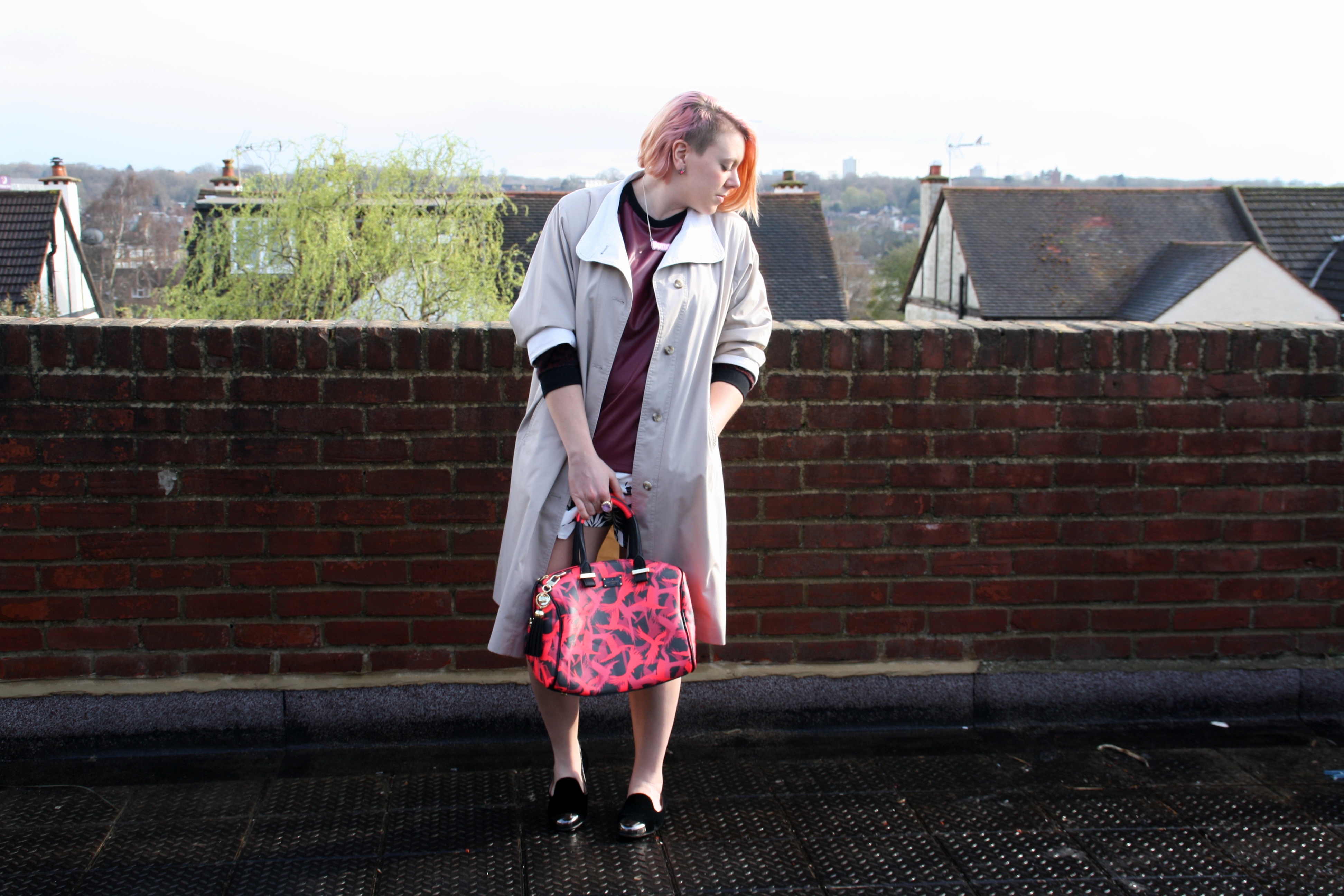 Mac’s are a great way to dress for the sunshine and random showers and I wanted to dress up my Nan’s old Mac and give it a modern twist. To help with this Modernisation, a wet-look style jumper from Miss Guided is ideal for a harder edge and an injection of colour. I love the constrast sleeves of this top and it is very comfortable and easy as a throw-on-item.