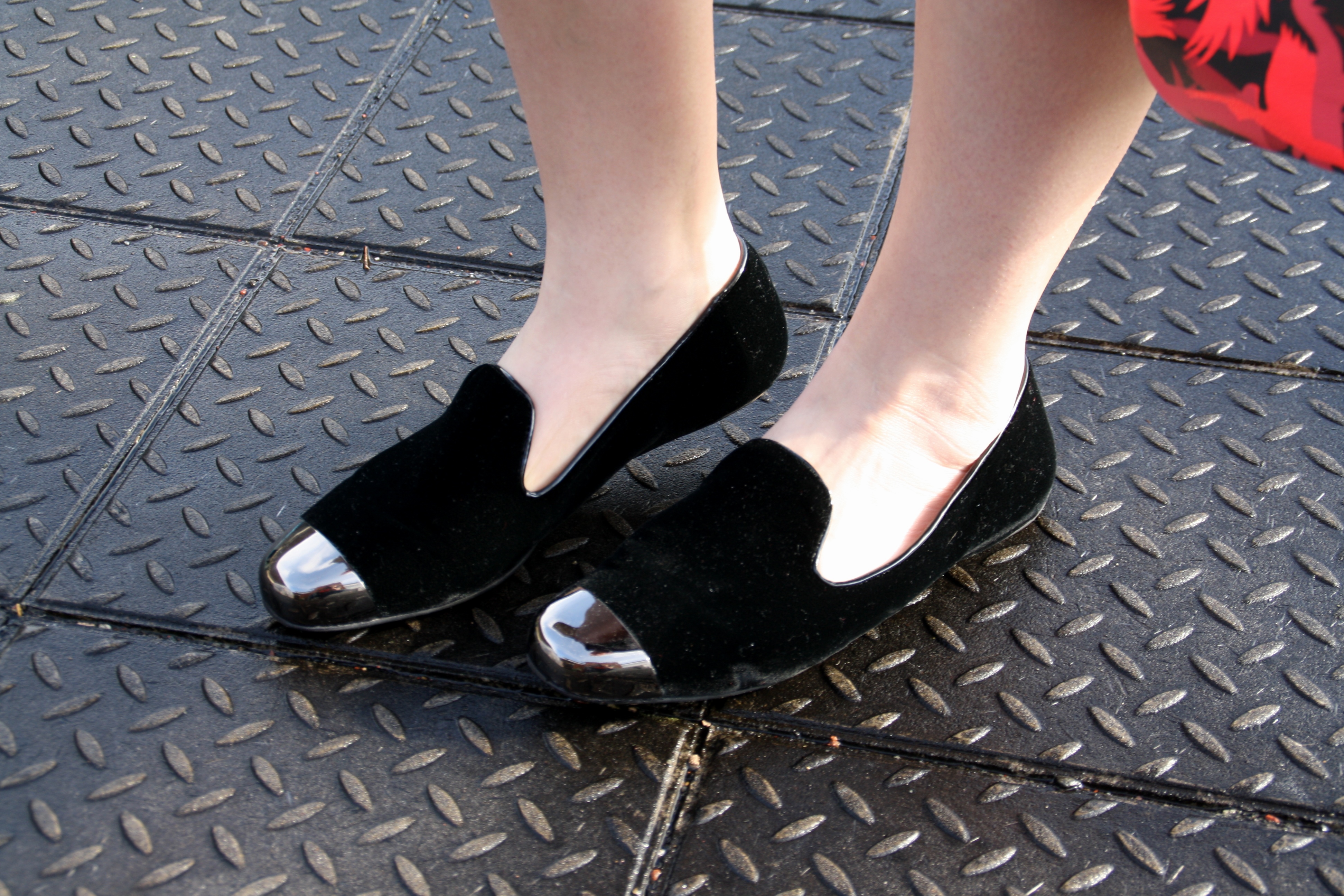 I wanted to wear something smart on my feet and these flats from Lucy Choi are great to dress up and down. I love the silver contrast toe cap against the black velvet and I think these shoes would look great with a cute dress too.