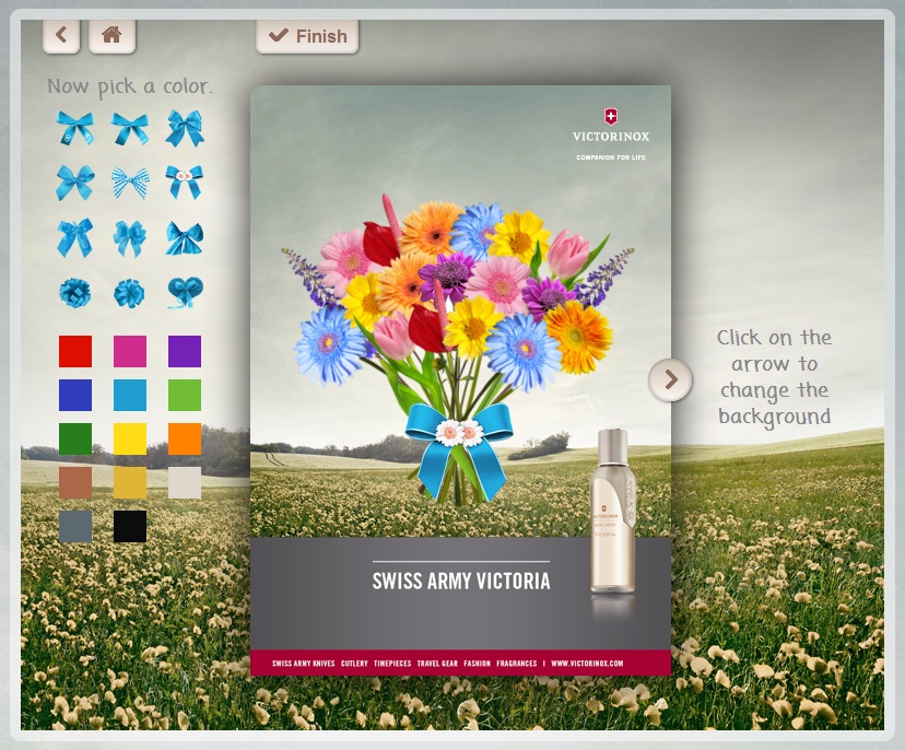 Victorinox also have another site where you can also create flower bouquets to send to your friends or family as an online E-card or Postcard. This great little site enables you to choose the flowers you want and how many and gives you the access to send it to whoever you like!