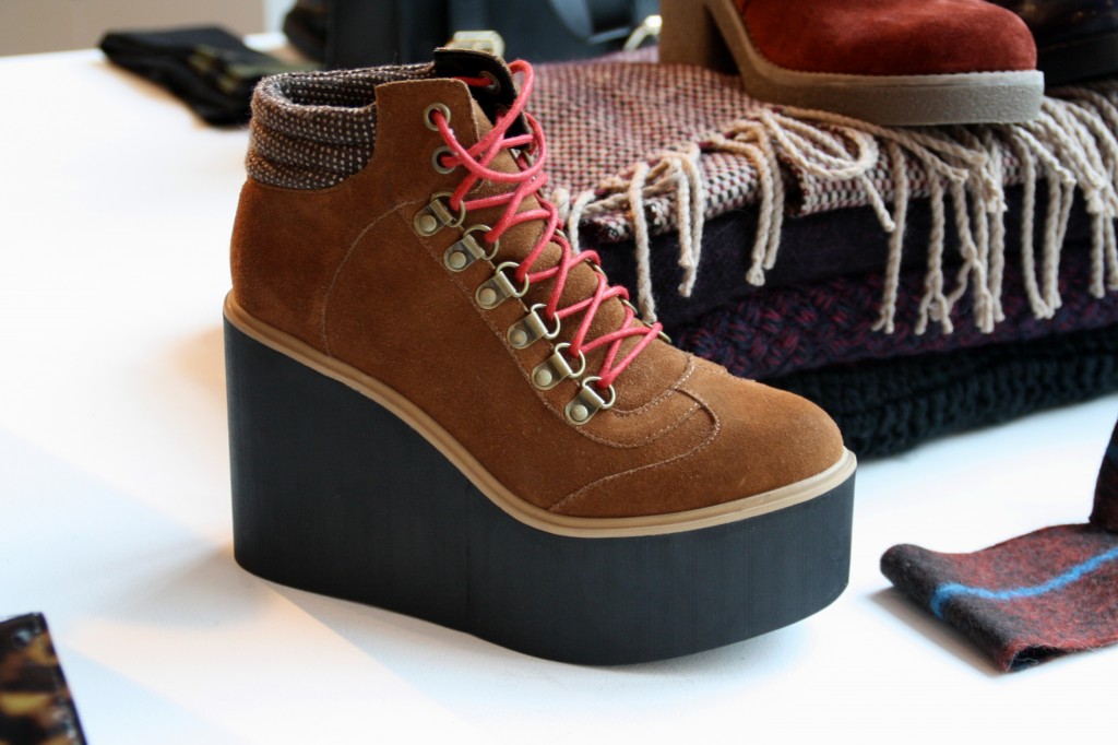 Womenswear will be bang on-trend with candy coloured faux fuzz coats, Scottish inspired full skirts and even winter florals will give any wardrobe a kick start. Key clutches, cartoon prints and check trainers look set to be best sellers and the new hiker boot wedges will have many girls falling over themselves to get a pair.
