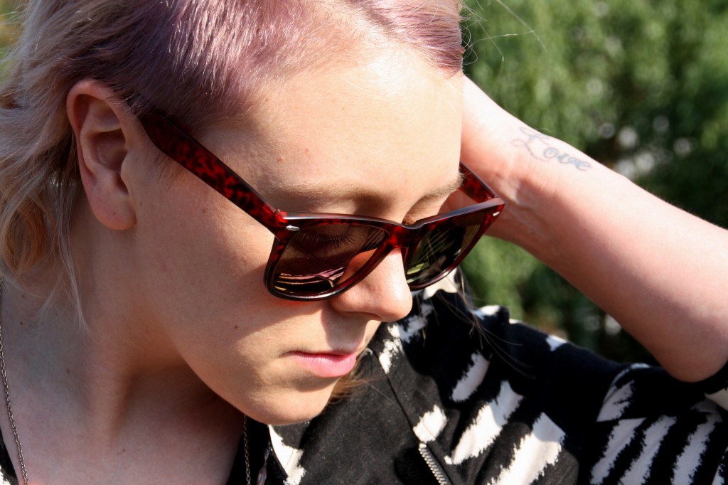 As well as showcasing these great things from Sainsbury’s, I wanted to show you these fab sunglasses from Sunglass Junkie. With a red leopard print affect on the arms, I love the colour of the reflective lenses and they look great with this overall look!