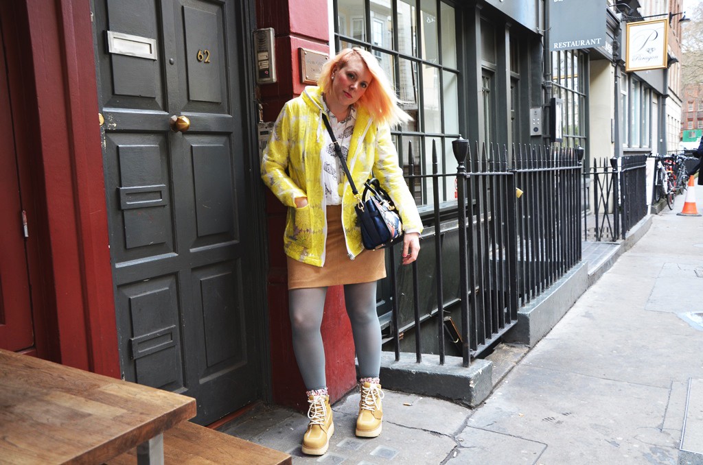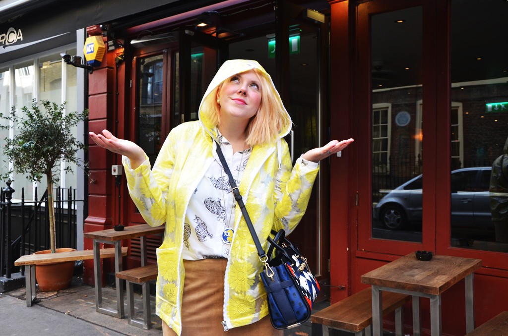 The past few weeks have been a wash of press days and meetings so I took the opportunity to meet up with Annie and do some outfit pics. As the weather has been so on/off with rain and the wind, I thought this cute raincoat from H! by Henry Holland at Debenhams was perfect to wear for the current climate! I love the mix of wax and lace and with it’s bright lemon hit, this mac is gorgeous for Spring and it makes me feel like I’m a kid again.