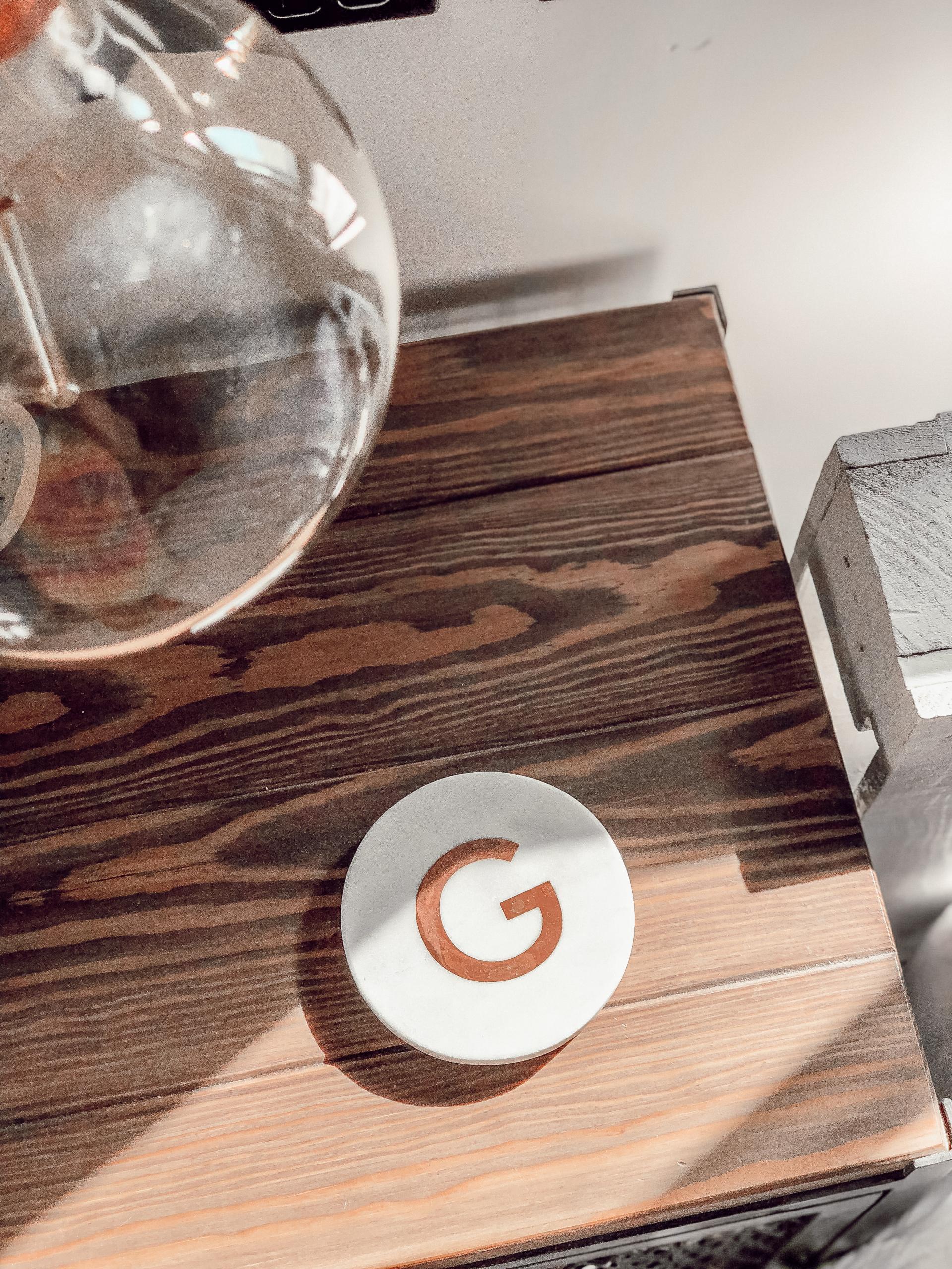 I really wanted some nice new coasters for our room and Oliver Bonas has a great selection. As we made a copper light fixture, it was important to have some copper inspiration throughout our interior design and these copper coasters fitted in with this plan perfectly. They are great for our water which we always have on our bedside tables and best yet, they are weighty so they don’t move around which is great.