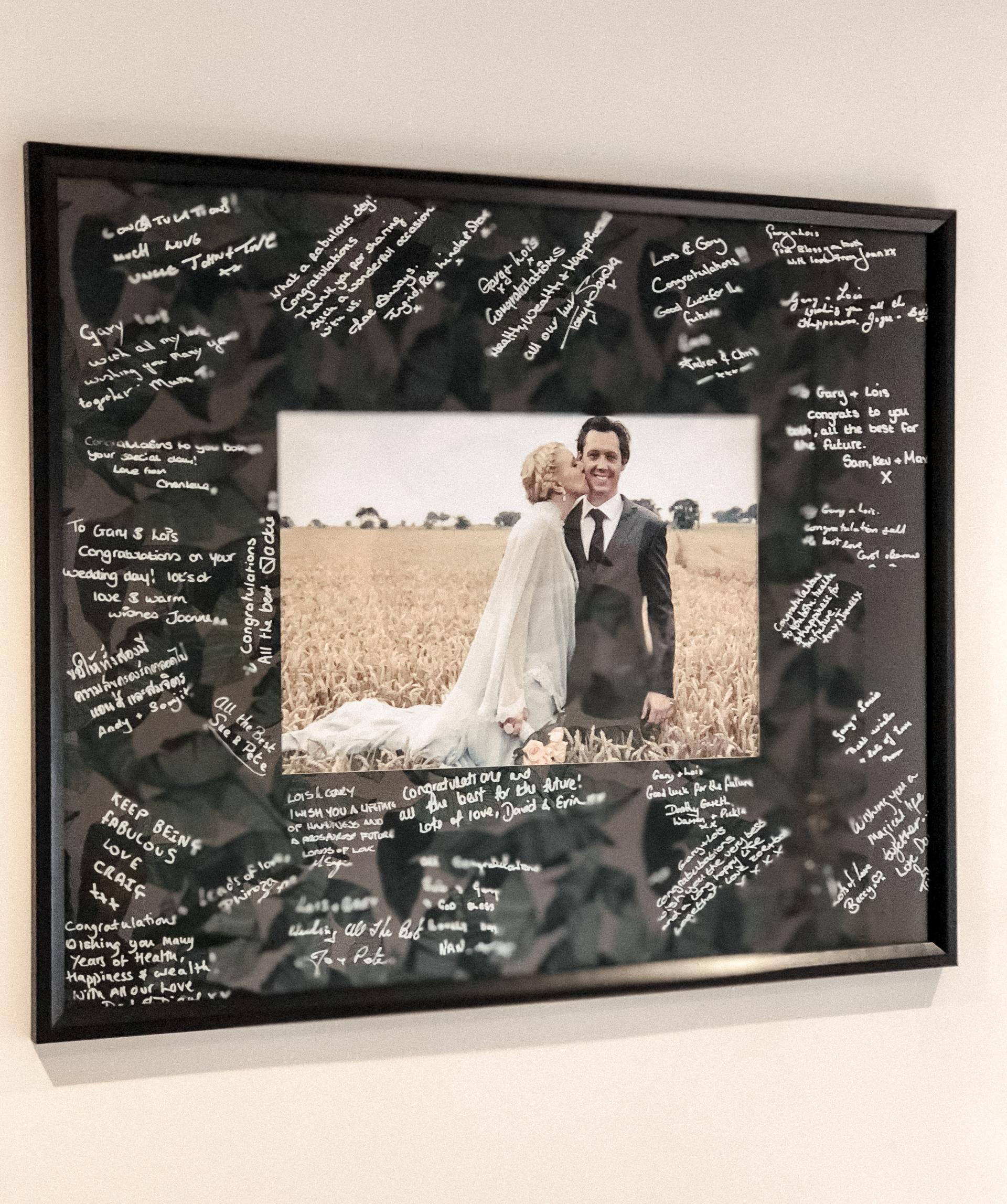 Last up is our wedding picture! When we got married(back in 2012), we asked guests to sign two of these black frames during the day as we knew we would have our pictures printed and placed up when we bought our first house. As we started building work as soon as we moved into our place, we didn’t have the opportunity to hang our pictures but now our room is finished, we have hung one of them in pride of place by our bed.