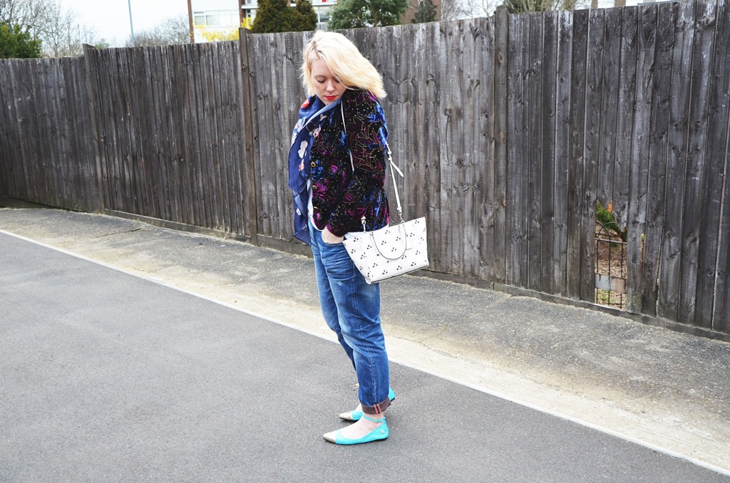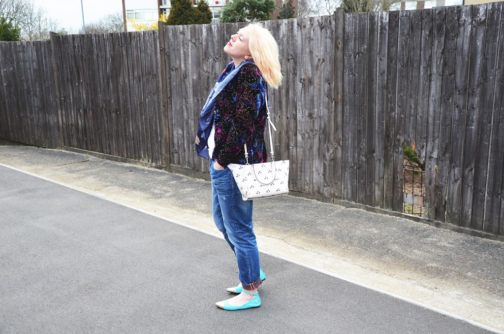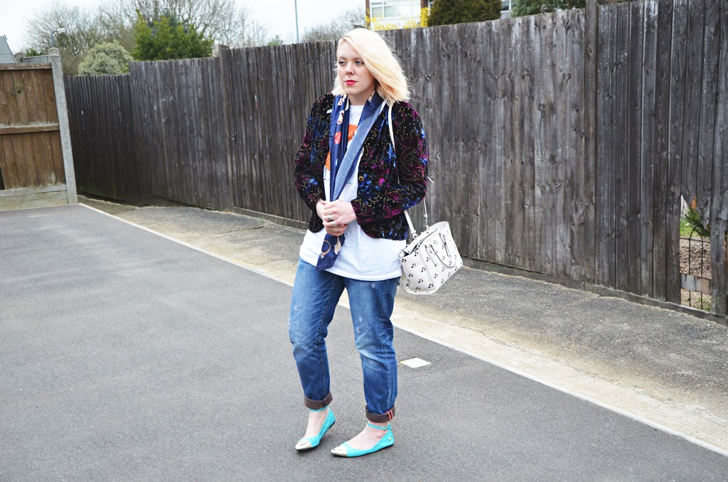 I used to live by vintage and when I found this gorgeous jacket in a local charity shop, I knew I had to wear it for a post. As vintage can sometimes be hard to style with modern, edgy clothing, I decided to take this look down the casual route and I love all the prints and colours I have mixed together.