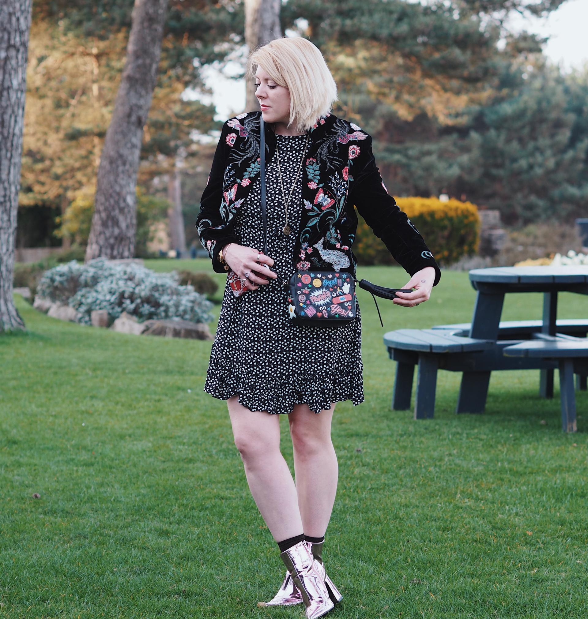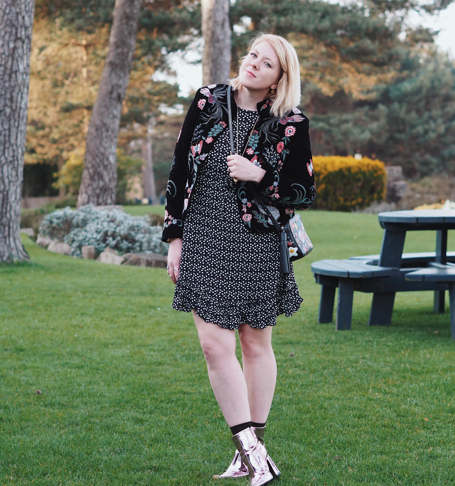 Jacket – Zara(similar here), Dress – & Other Stories(similar here), Bag – Anya Hindmarch and Boots – Public Desire.