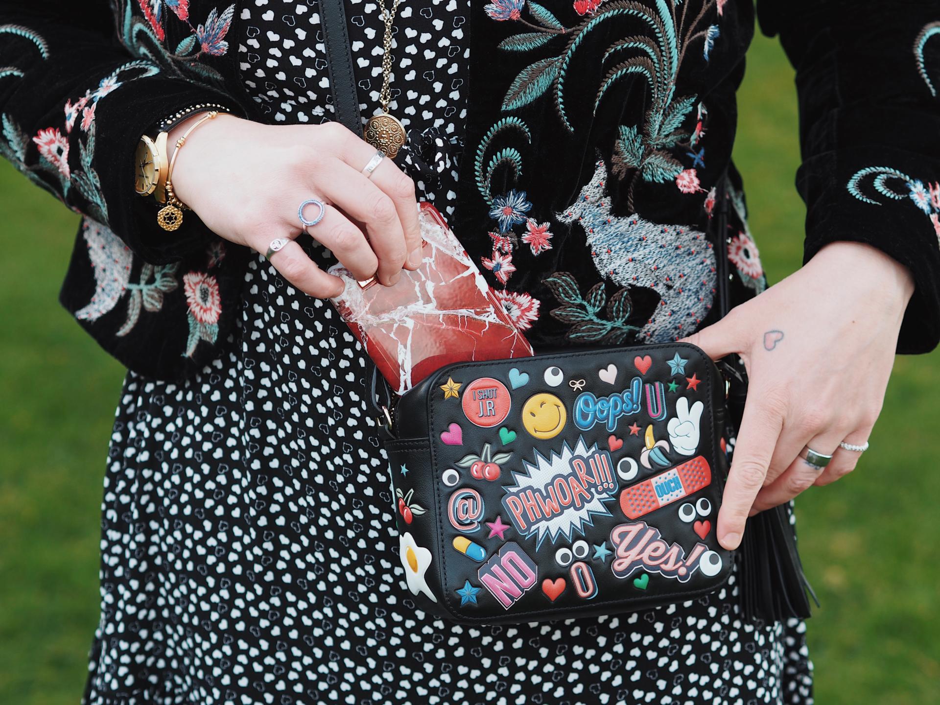 I love this bag! It’s small but big enough to store some makeup and your phone. It has a gorgeous suede lining and even has slots for your cards.