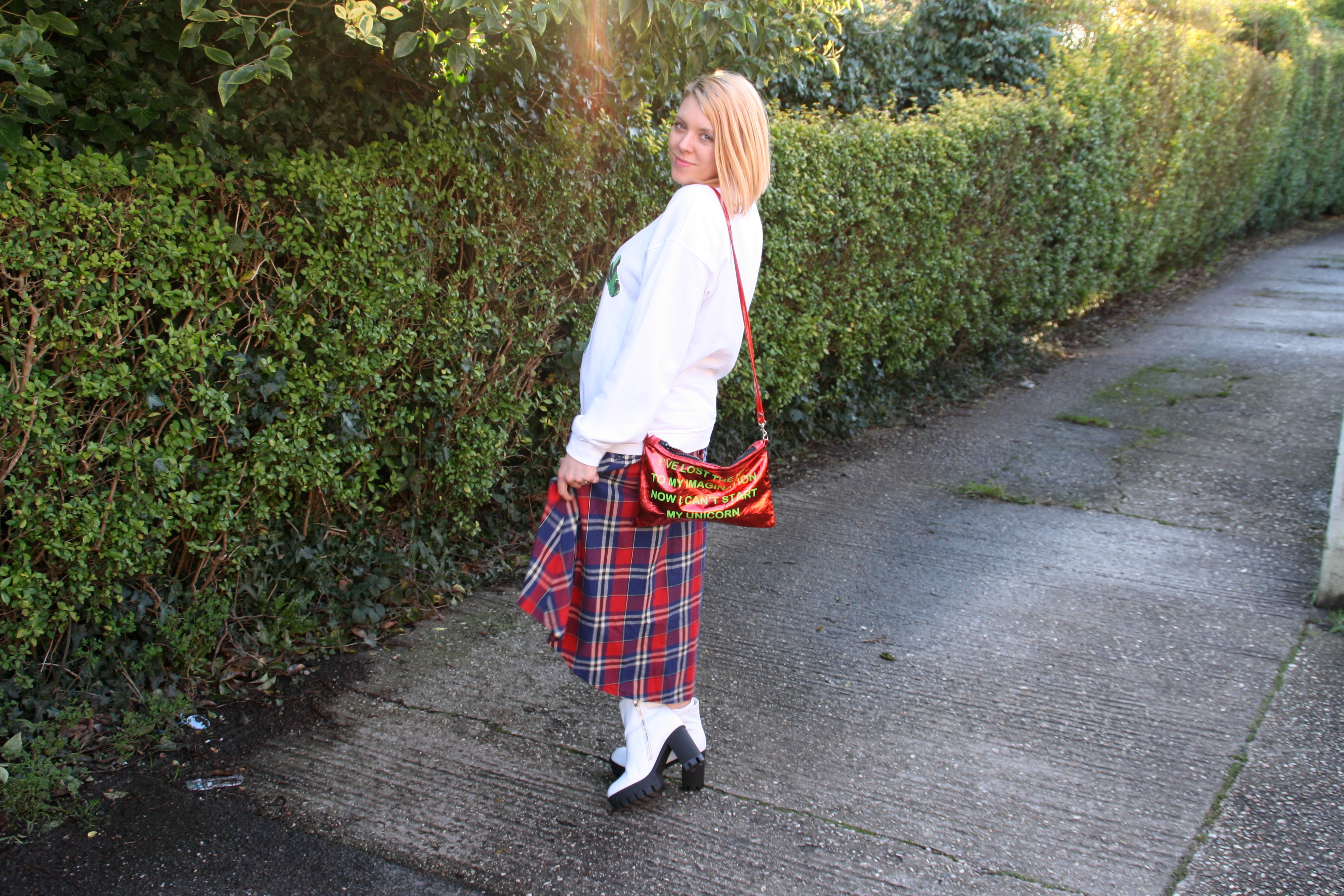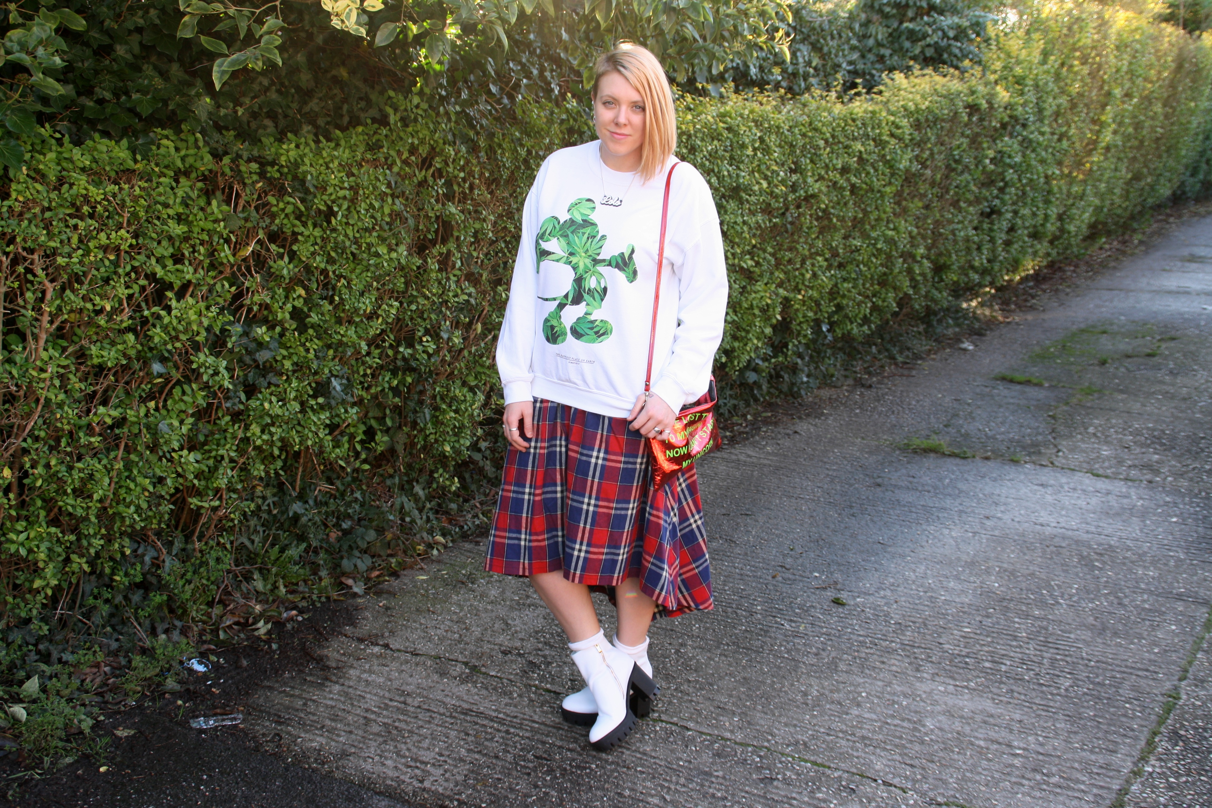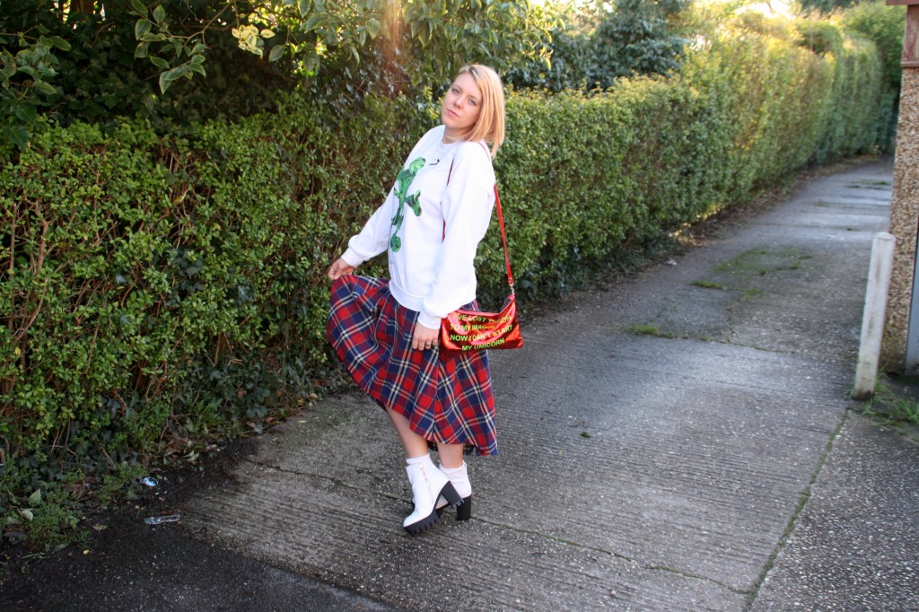 You may have heard of Alice’s Pig before but if not, you have now! The brand is UK born and they produce original and unique pieces that are good quality and designed well. I love this Tartan skirt with a draped back and is normally worn highwaisted but I choose to wear mine a little lower. The Skirt is also made of very soft material and I think it’s ideal for all year round.