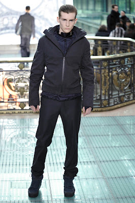 Masculine cuts, with modern shapes was the message from Wooyoungmi for A/W 2011. With layering, boots and work wear inspiration, the models radiated confidence with structured piece that were in rich Winter colors for the new season. 1940’s Khaki/brown, sporty blues and classic black gave a tailored feel for such a diverse collection for any male who loves to dress with a difference.