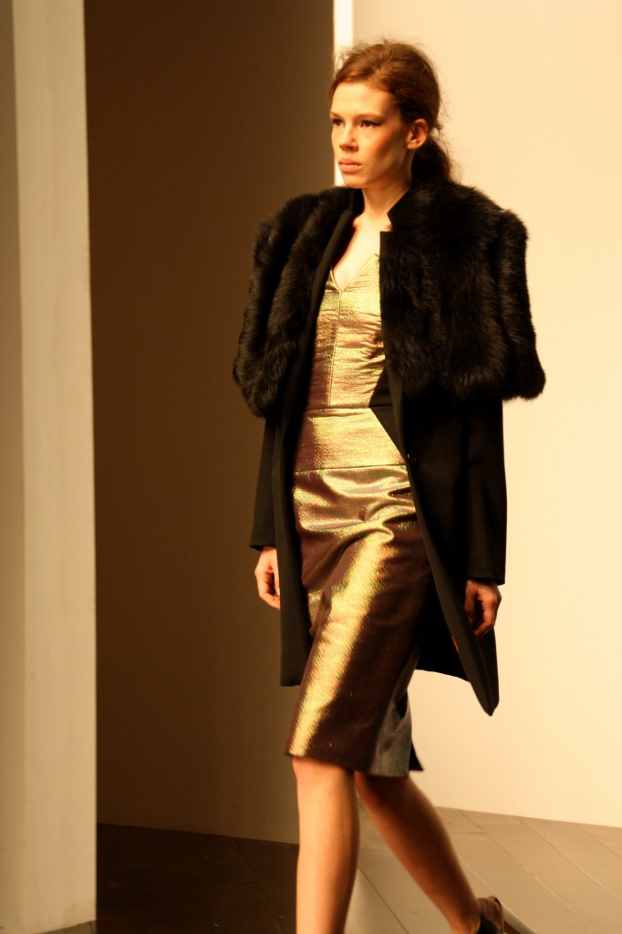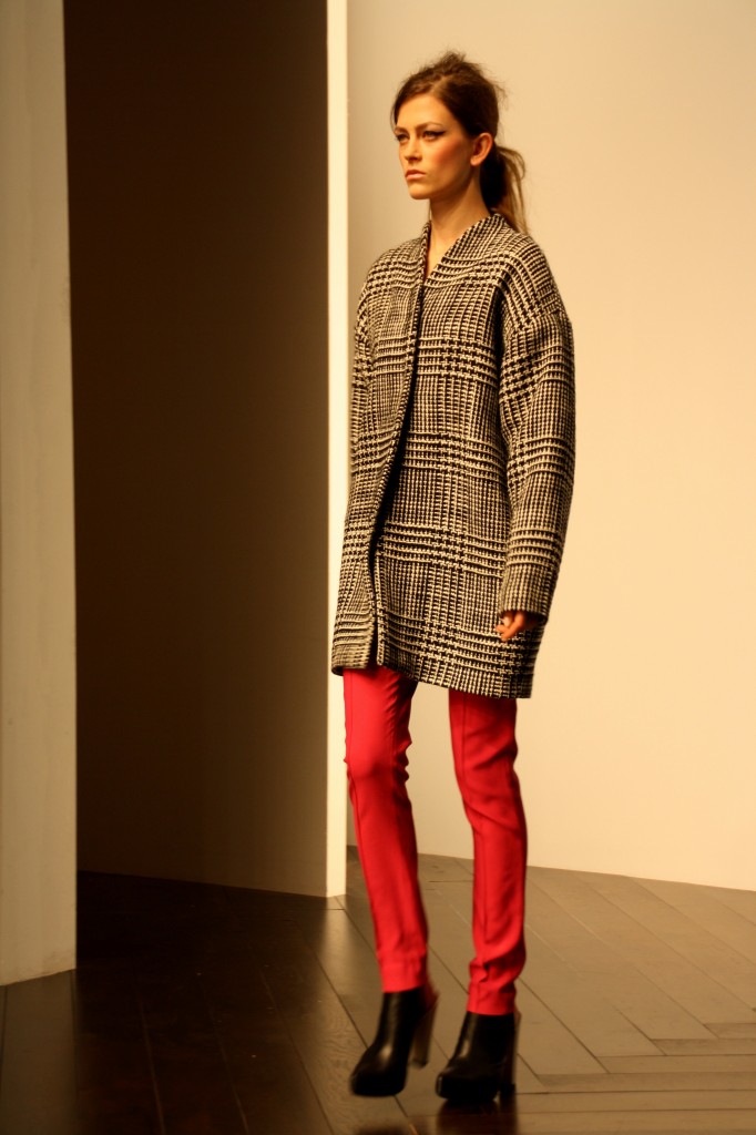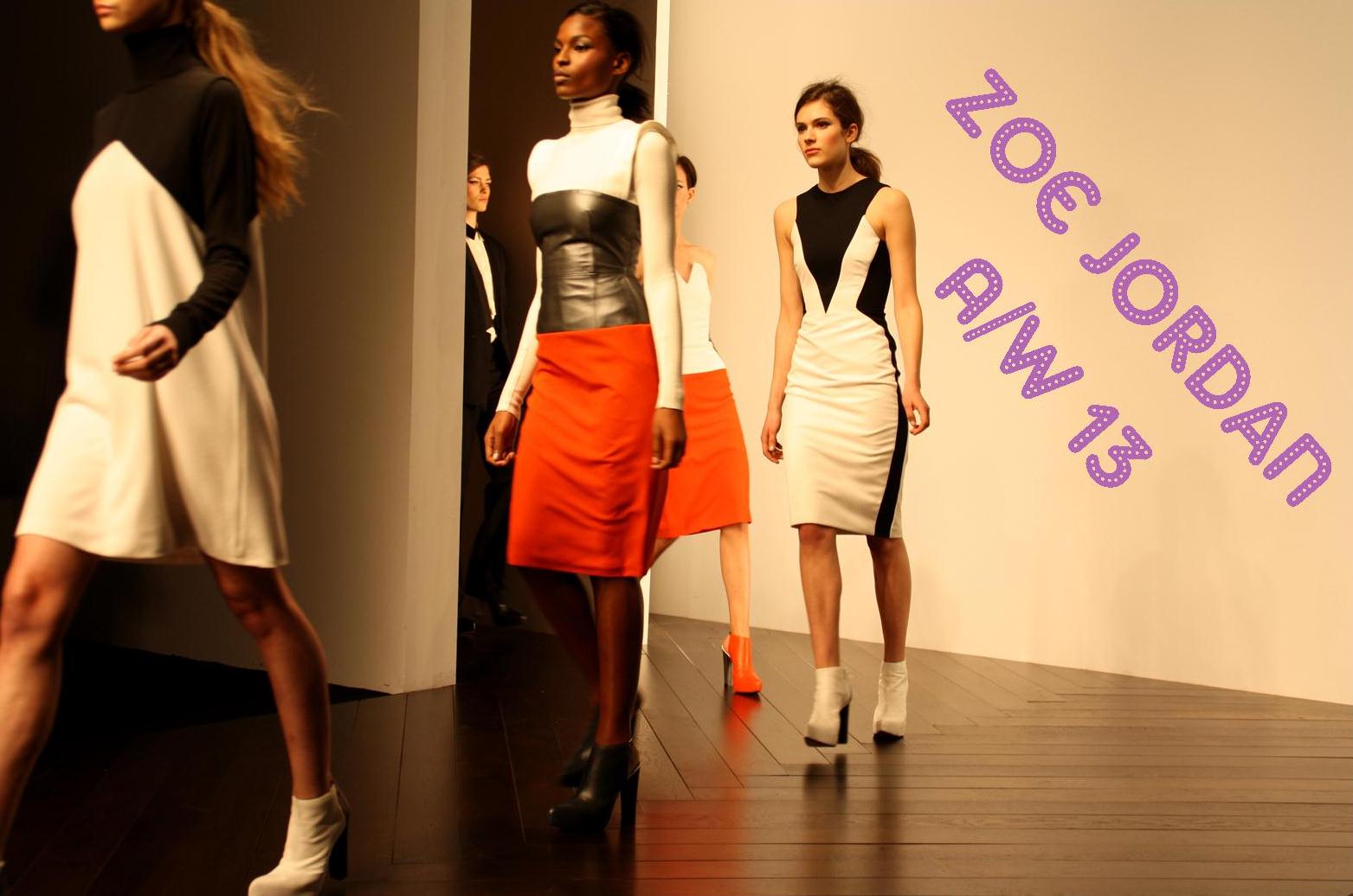 Zoe Jordan kicked off London Fashion with a simple yet non-traditional A/W 2013 collection. The more simpler pieces had a slight 60’s look to them with shift dresses and the turtle neck injection. Cuts were aimed for a more sophisticated look and the classic floor skimming dresses gave the collection some GLAM factor. Hits of Orange, Pink and Grey really gave the clothing a boast of life while the Monochrome contrasts will make it an easy transition from the current trend to the new.