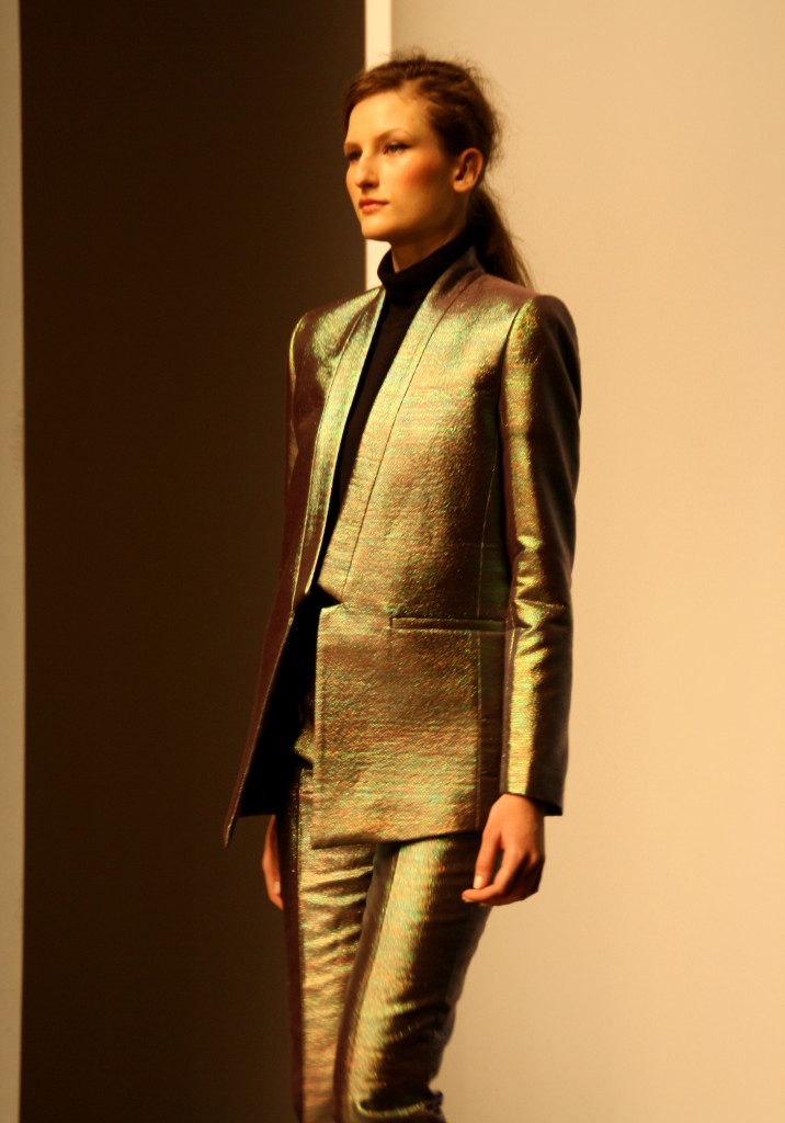 Surprises though were the metallic green suit and hounds dog tooth print which I am positively sure is another reference to the swinging 60’s.